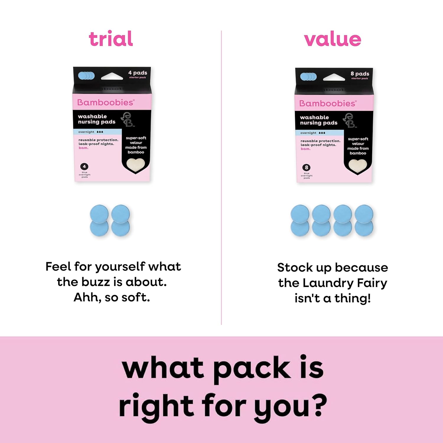 Bamboobies Overnight Nursing Pads, Ultra-Soft Velour, Reusable and Washable for Nightly Use, Leak-Proof Pads for Breastfeeding, 4 Pads