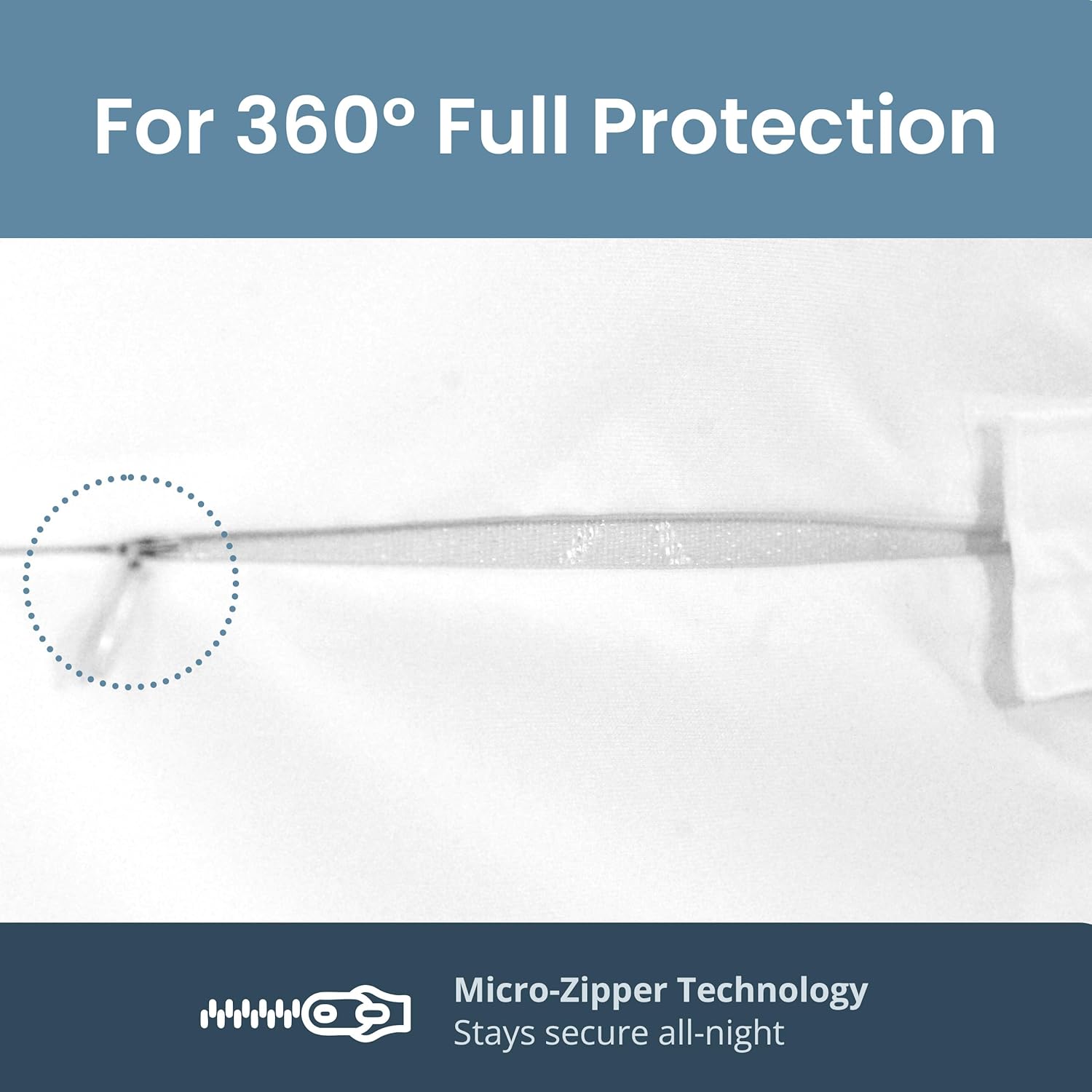 - Full 360° Protection: Unlike fitted sheet-style protectors that leave sides exposed, our zippered encasement provides complete coverage, safeguarding your mattress from every angle against spills, allergens, and bed bugs.