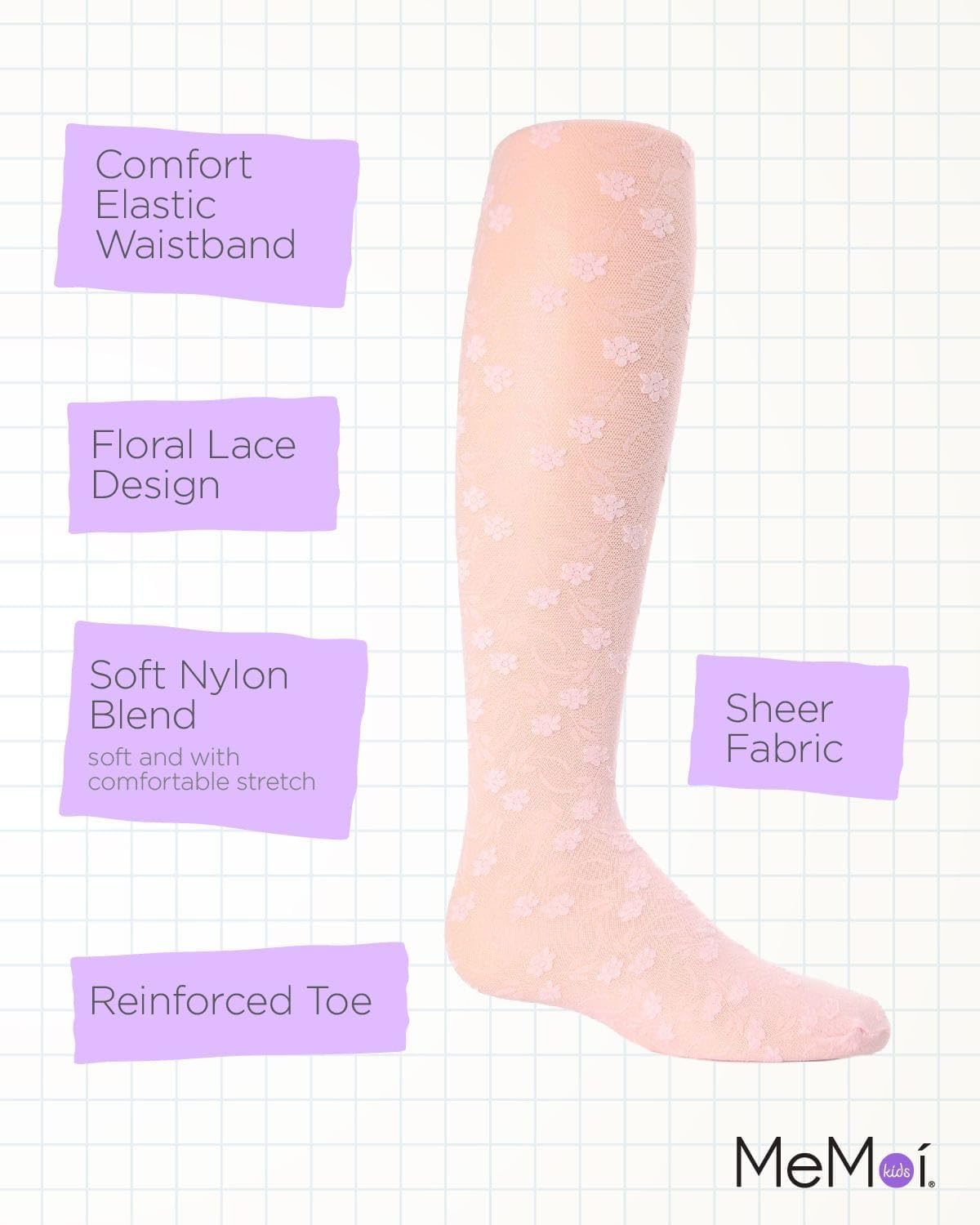 MeMoi Sweet Blossoms Sheer Tights for Girls, Ultra Soft and Lightweight Floral Lace Girls Tights - Sizes 2-14