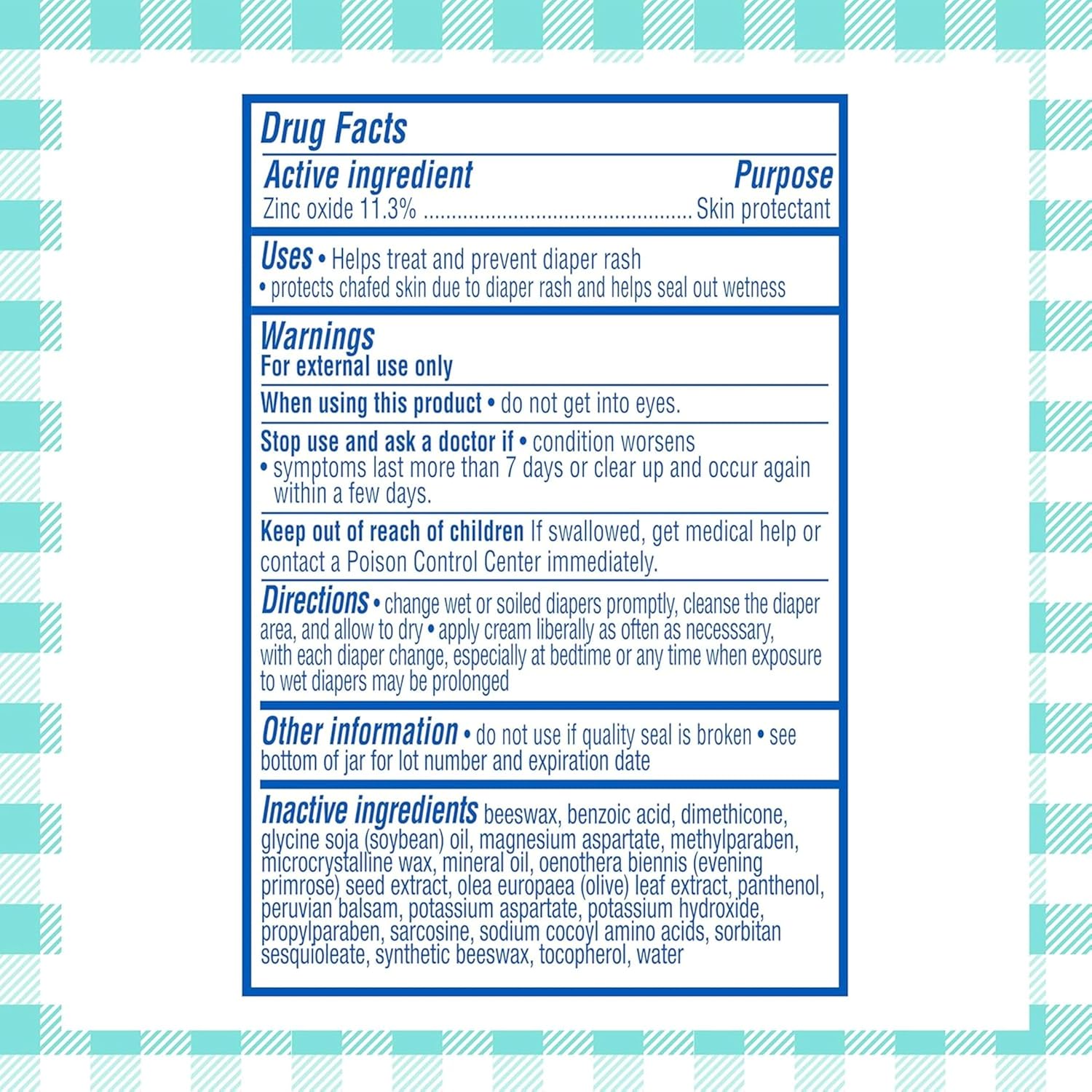 - Skin Barrier Cream Protection That's Just Right - Formulated with 11% zinc oxide, a skin protectant, to help seal out wetness and protect against irritating diaper rash on sensitive baby skin. Not too thick for easy application and strong enough for complete diaper rash relief and protection.