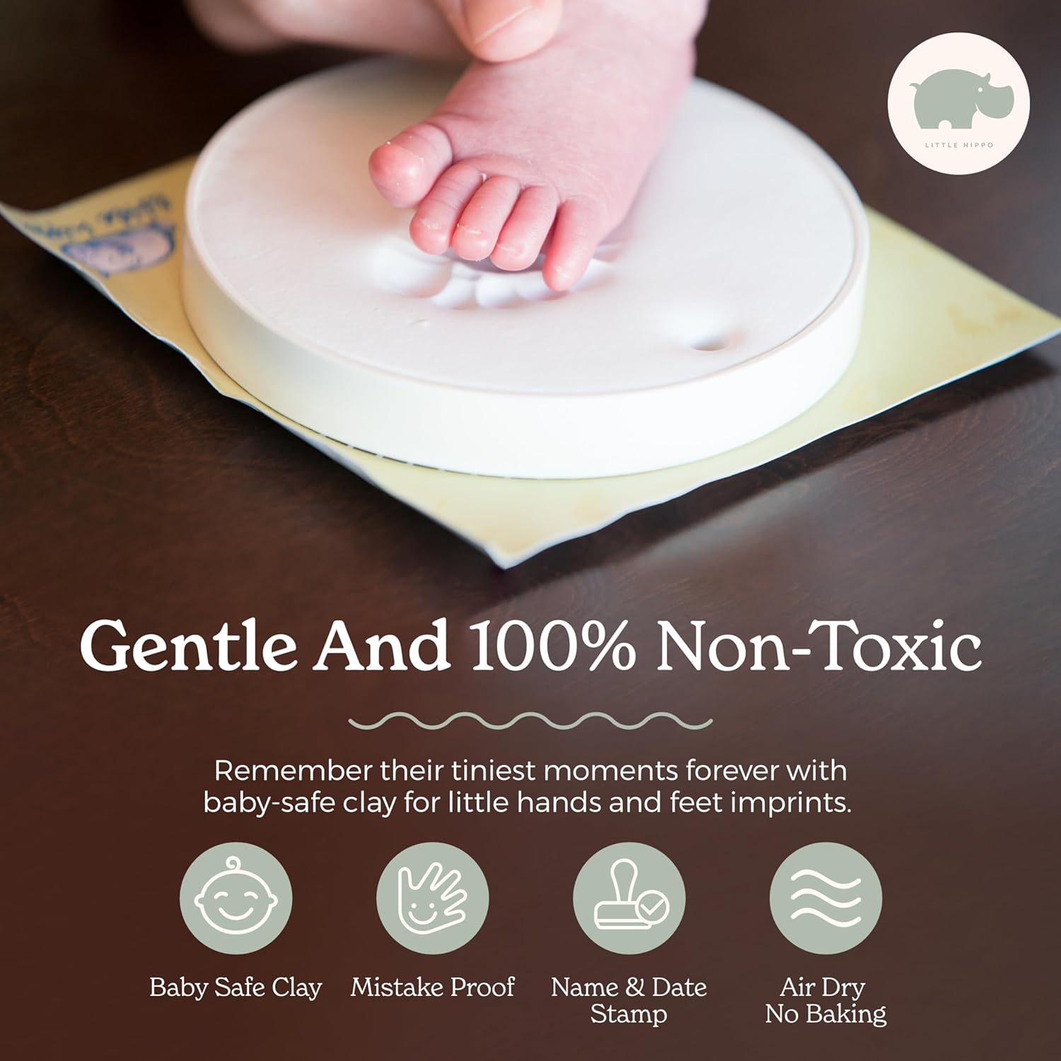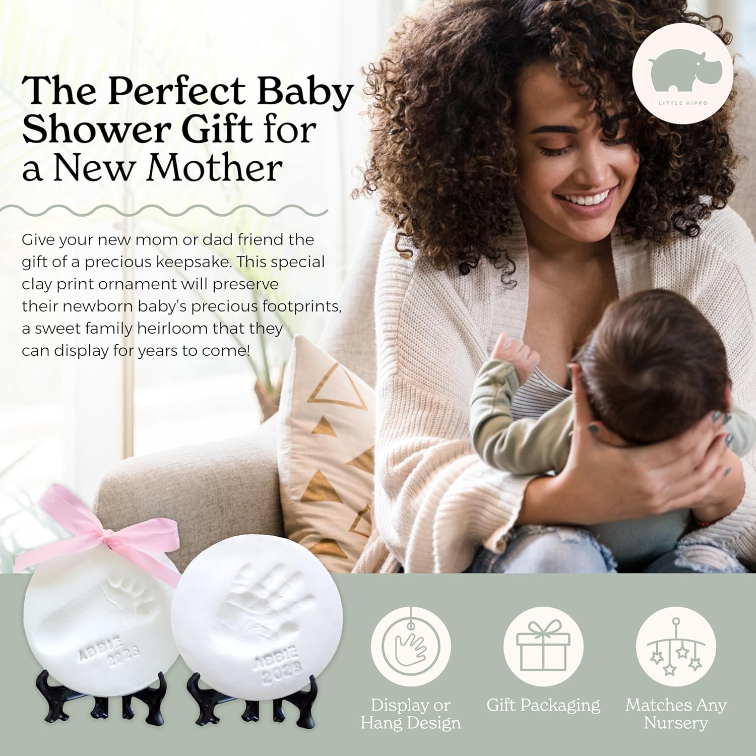 Little Hippo Baby Ornament Keepsake Kit (Newborn Bundle) - 2 Easels, 4 Ribbons & Letters! Handprint and Footprint Clay Casting Kit for Baby Shower Gifts, Boys & Girls