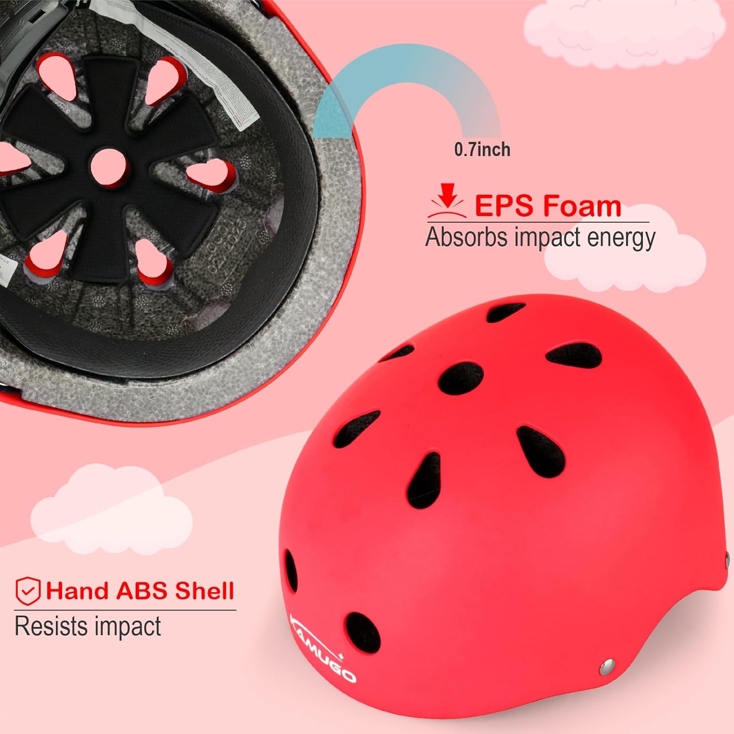 - PREMIUM PROTECTION FOR YOUR KIDS: Suitable for children and toddlers with helmet size: 48-54 cm / 18.9- 21.3 inch.Contain 1 adjustable KAMUGO helmet, 2 knee pads, 2 elbow pads, 2 wrist guards, bring your kids all-round safety protection.
