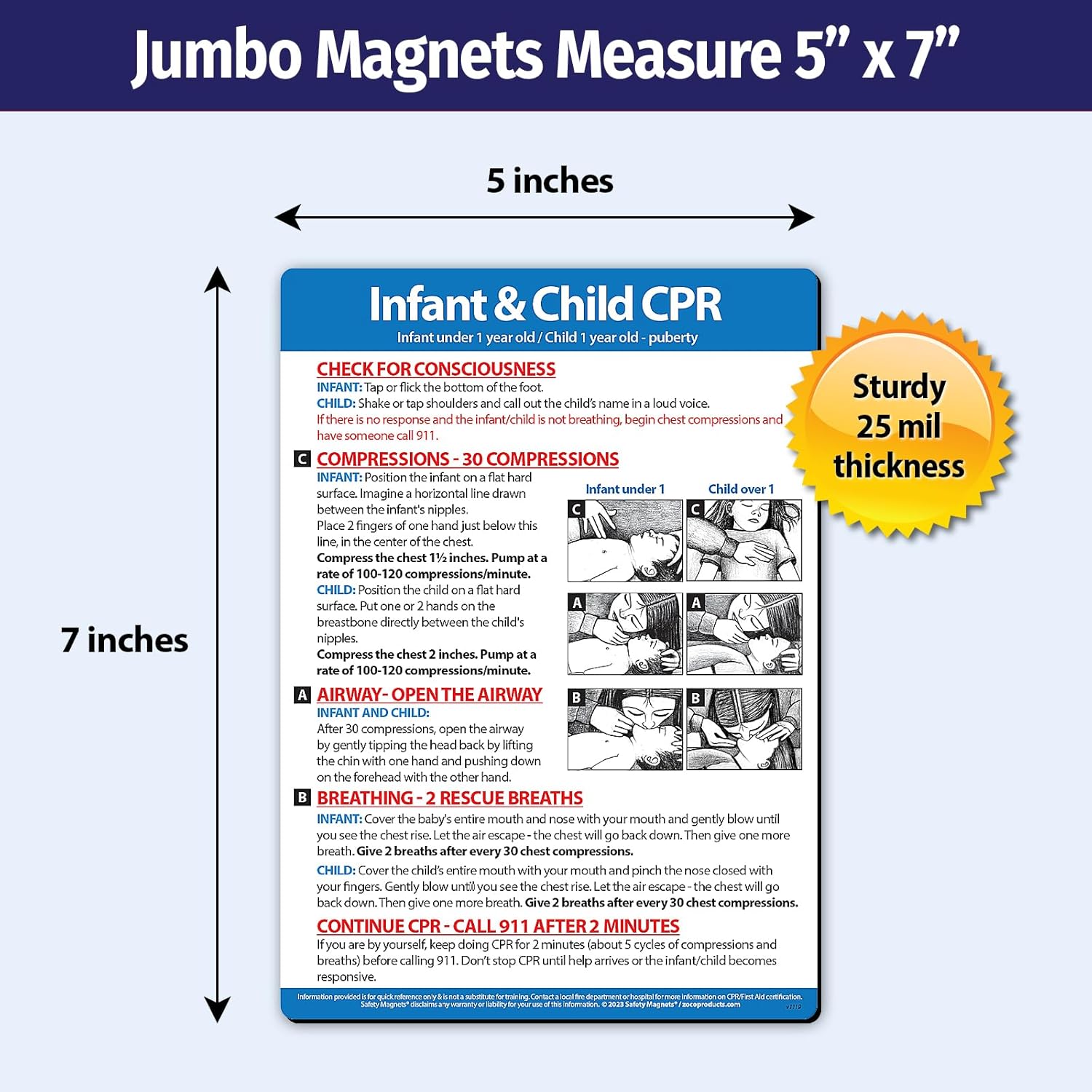 Safety Magnets by ZOCO – Infant and Child CPR Magnet – 5"x7" Emergency First Aid Guide with Step-by-Step Instructions – CPR Reference for Homes, Daycares, Schools, and Parents