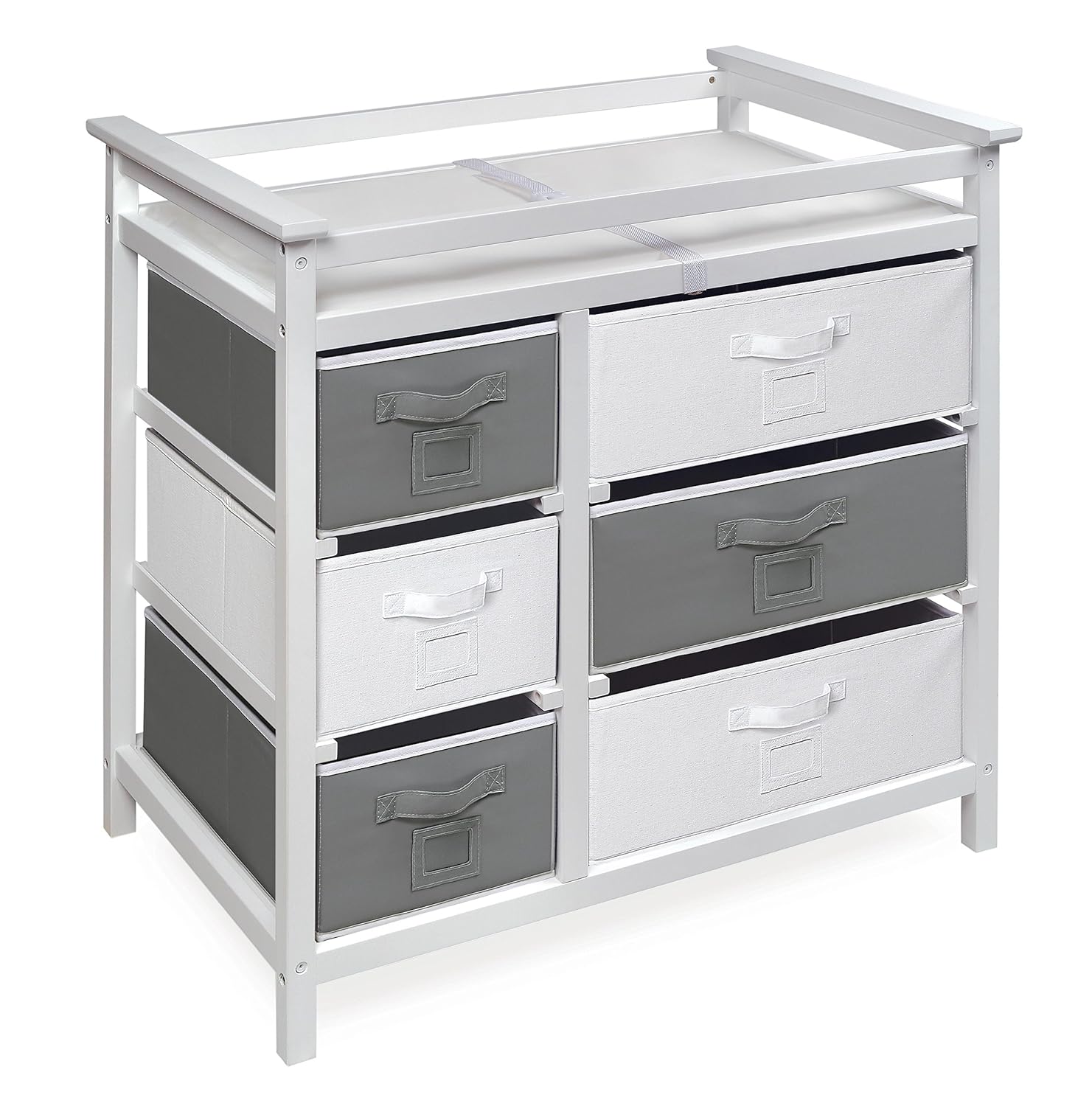 - CUSTOMIZE CHANGING TABLE DRAWER COLORS: Reversible baskets in gray and white allow you to customize our furniture to match the look of your nursery or bedroom, while nameplate pockets help you easily label and organize contents.