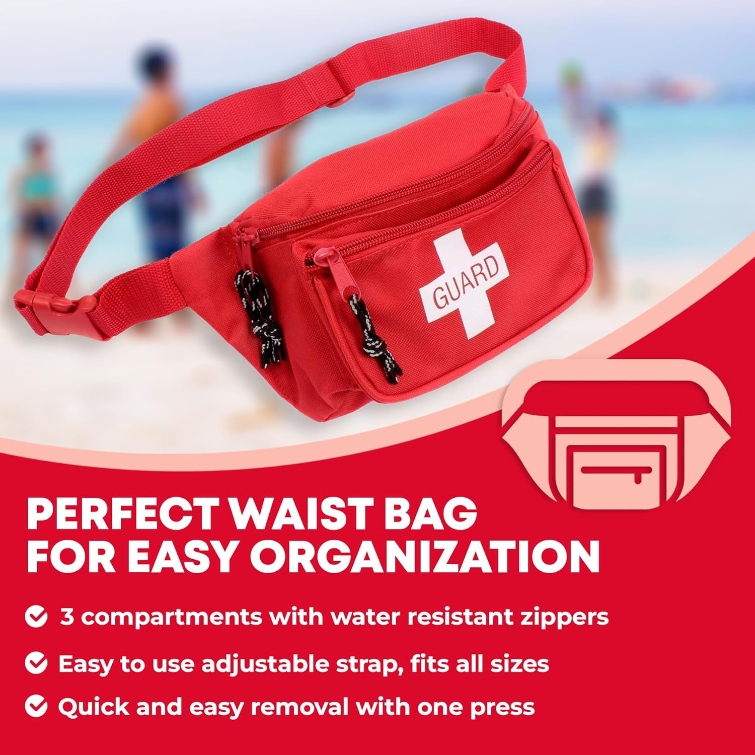 - ESSENTIAL GEAR - The Ever Ready First Aid Fanny Pack is a must have for any rescuer working at a beach or pool looking to keep their gear and personal belongings always within reach.