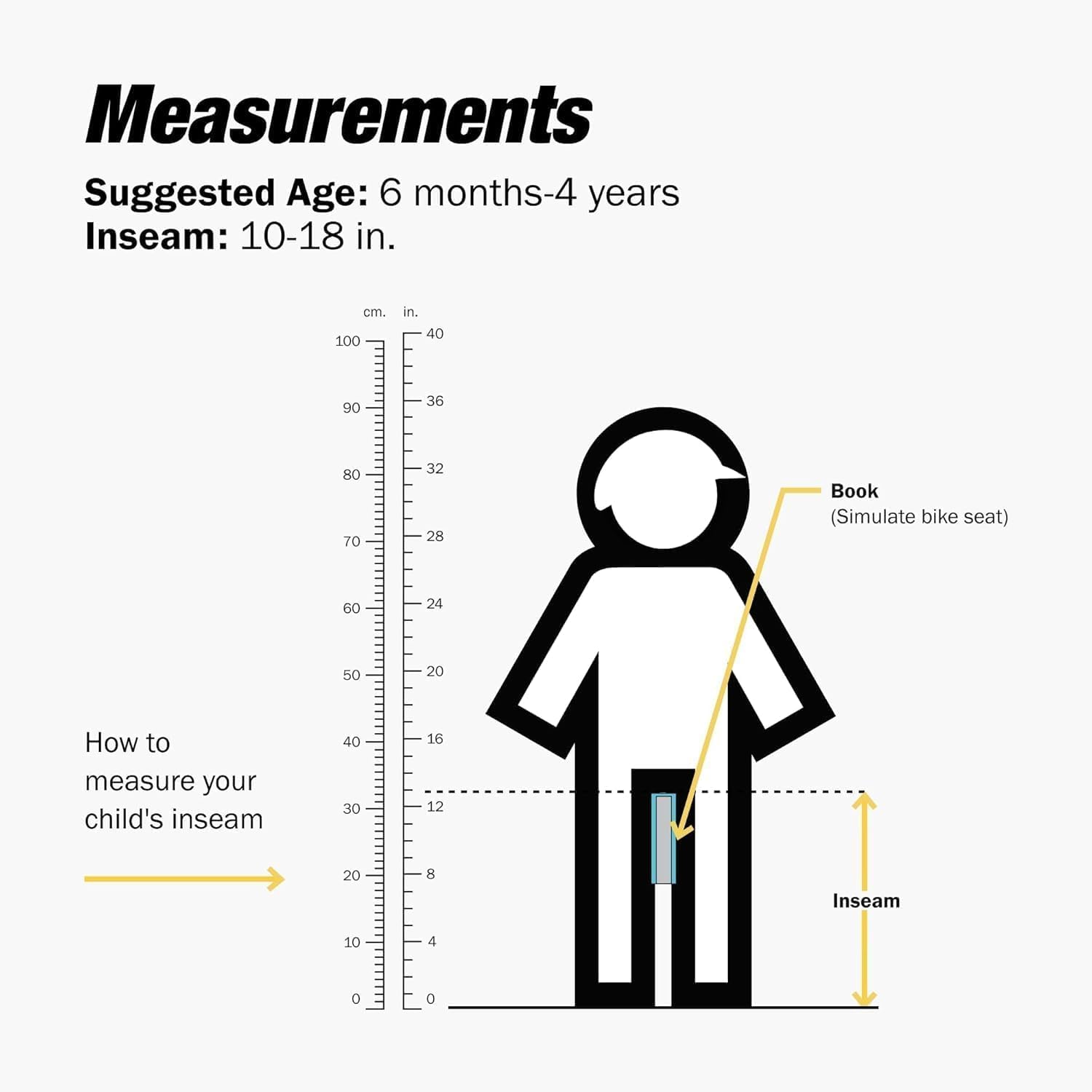 - 12” SPORT BIKE - The Sport is our best all-around model. It features mini rubber grips, a padded seat, a safety pad, the performance footrest, and an 11” starting seat height, so your toddler can easily straddle the bike at a young age