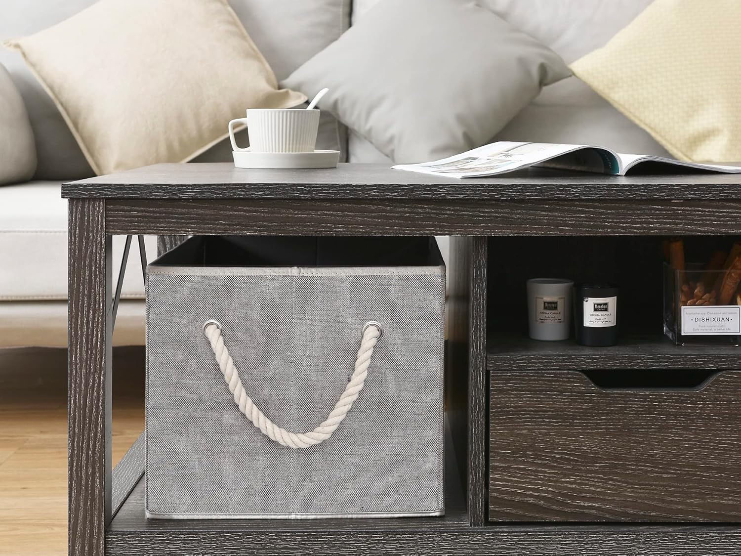 - The polyester blend fabric and the inserted heavy-duty boards of the storage bins allow them to support a weight of up to 30 pounds.