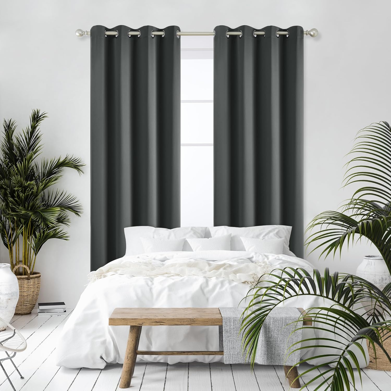 Deconovo Blackout Curtains, Room Darkening Thermal Insulated Window Drapes, Noise Reducing, Grommet Top, 2 Panels 52W x 84L Inch Machine Washable for Bedroom Living Room Nursery Dark Grey