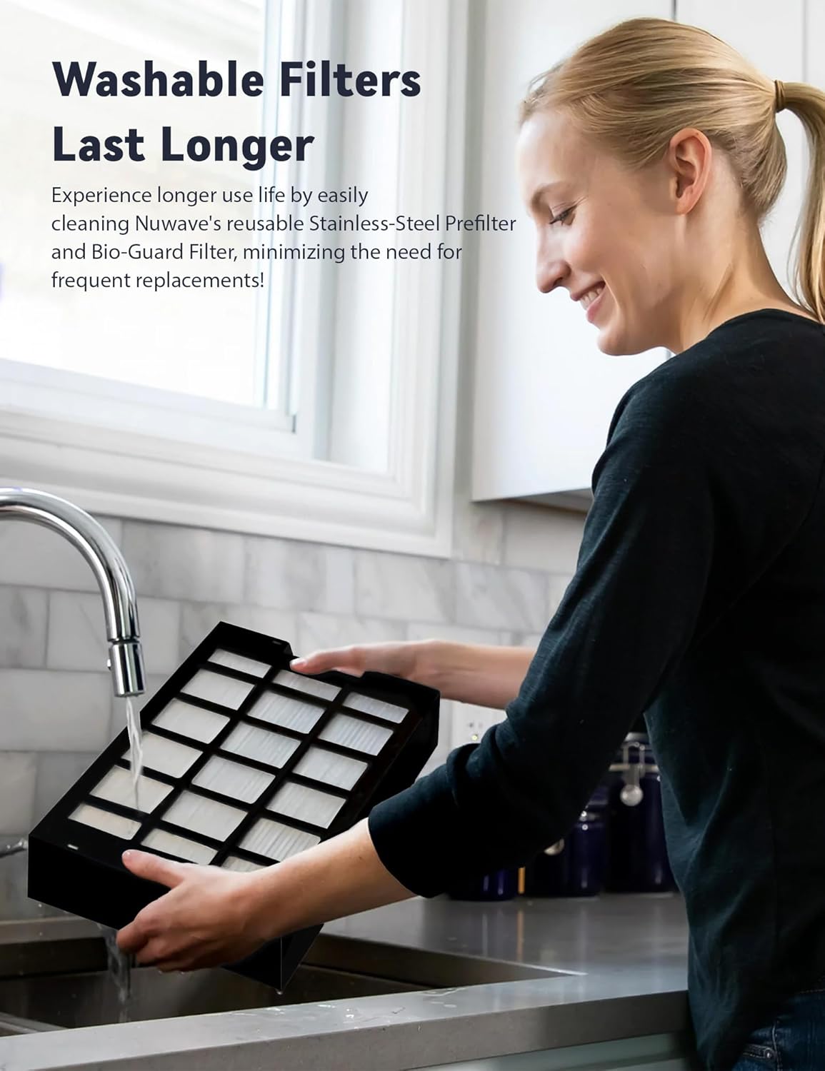- WASHABLE & REUSABLE FILTER TECHNOLOGY – Never-rust stainless-steel pre-filter and Bio-Guard filter are washable and reusable. The Ozone emission removal filter is reusable, these filters were designed to eliminate costly replacements. The True HEPA and Carbon filter is replaceable every 12 months.