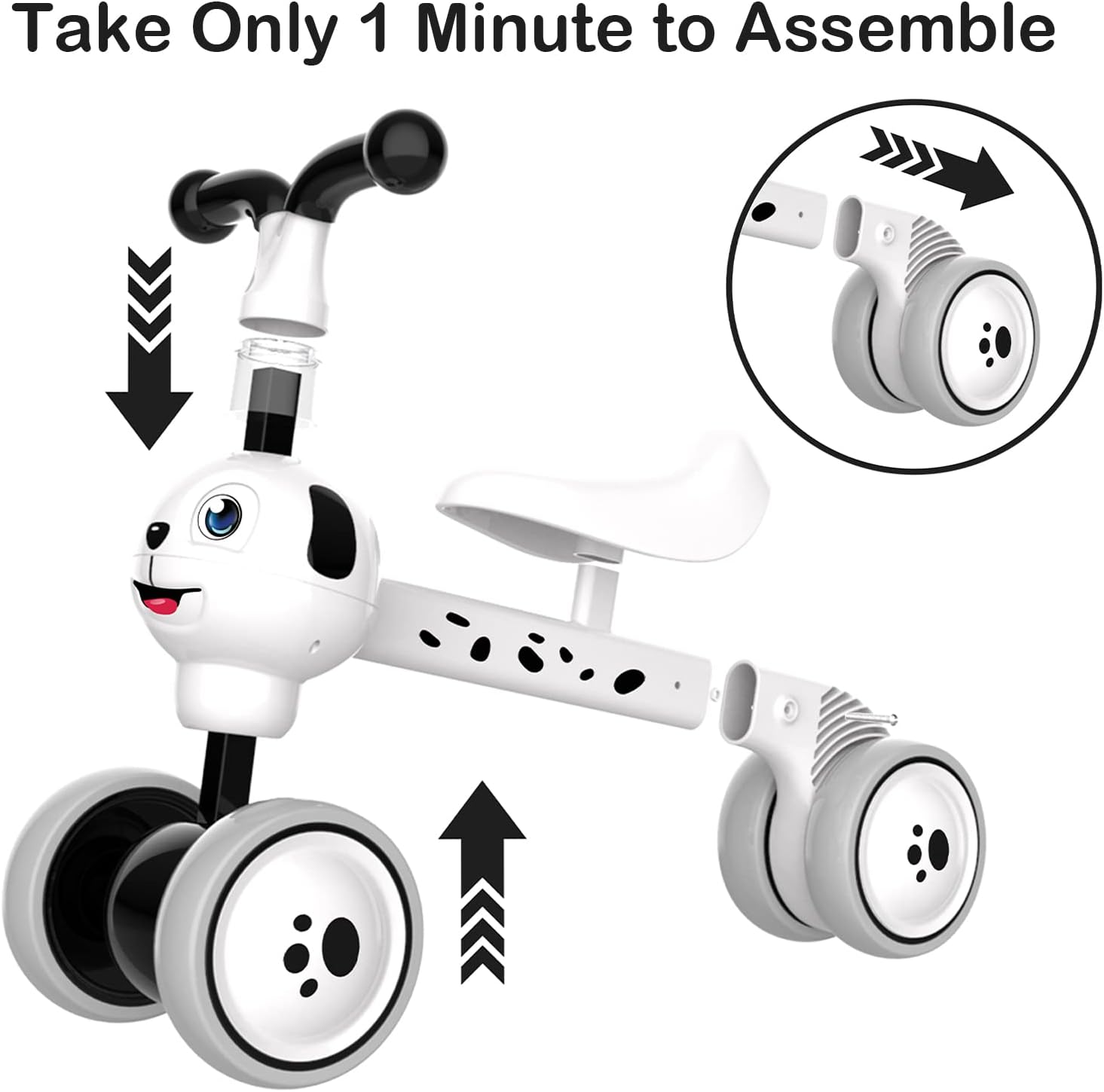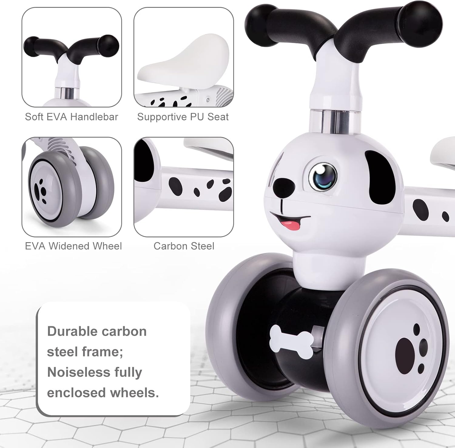 YGJT Baby Balance Bike Toys for 1 Year Old, Birthday Gifts for Boys and Girls, Silent Wheels & Non-Pedal Baby Walker Riding Toys for 10-36 Months Toddlers, Kids First Bike Gifts Spotty Dog