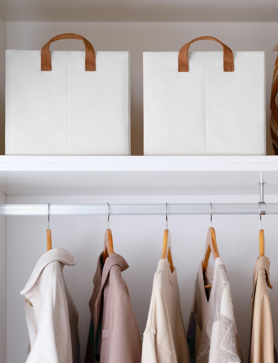 StorageWorks Storage Bins, Fabric Storage Bins for Shelves, Large Storage Baskets with Metal Frame, Closet Baskets and Bins with Handles, Beige, 2-Pack