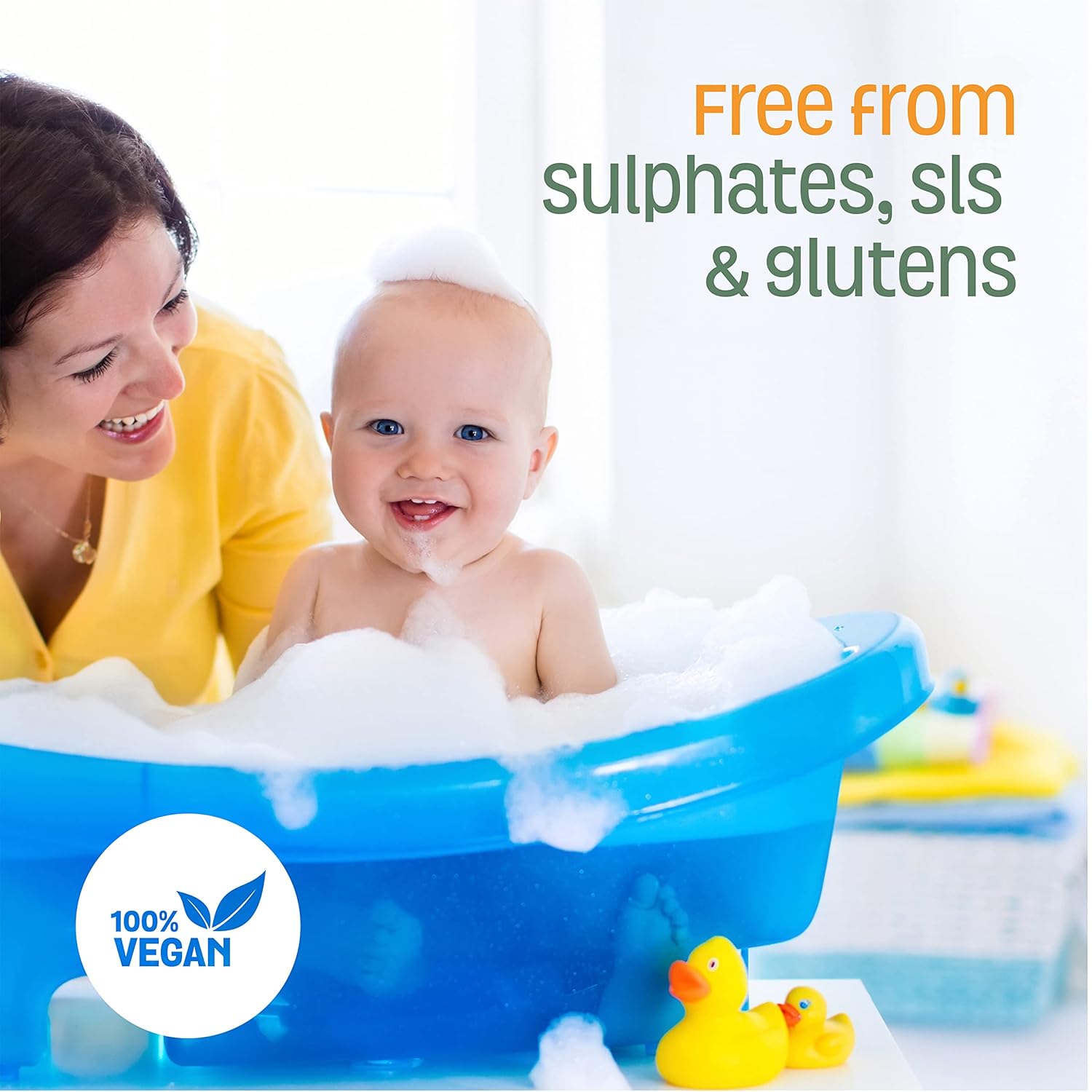 - GENTLE BABY SHAMPOO - This luscious baby shampoo is soft and gentle enough for newborns, infants, kids, teens and even adults. Our tear free baby shampoo and conditioner is safe to use and won’t sting.