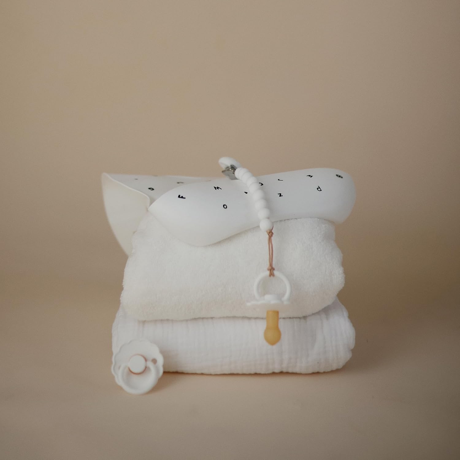mushie Silicone Baby Bib | Adjustable Fit Waterproof Bibs (Letters White)