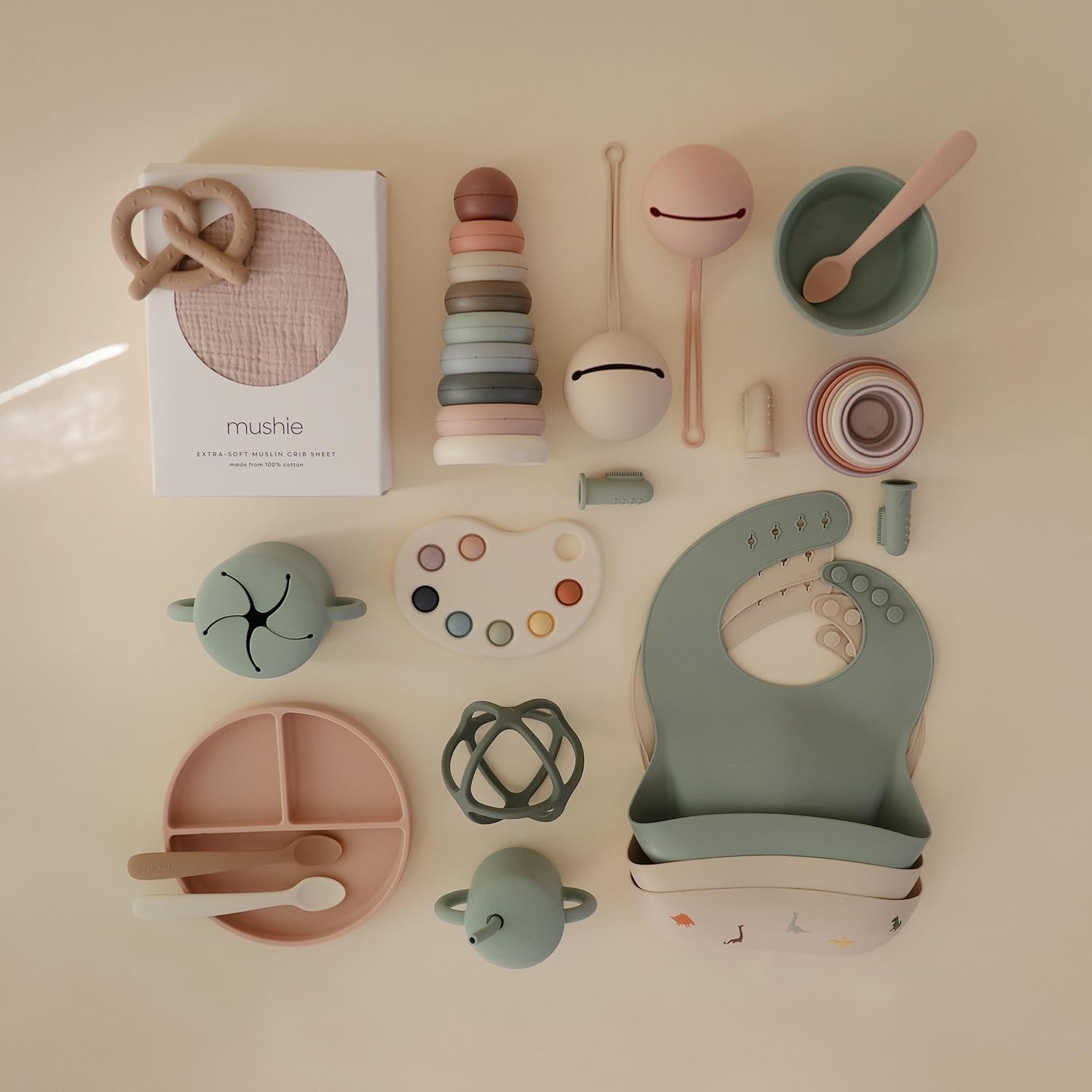 - Keep your little one feeling comfy and clean with our fun-loving collection of silicone bibs. Designed in Sweden, mushie bibs feature classic patterns capturing a look that's both timeless and elegant. Our timeless colors and patterns pair well with mushie silicone placemats, splat mats and tableware.
