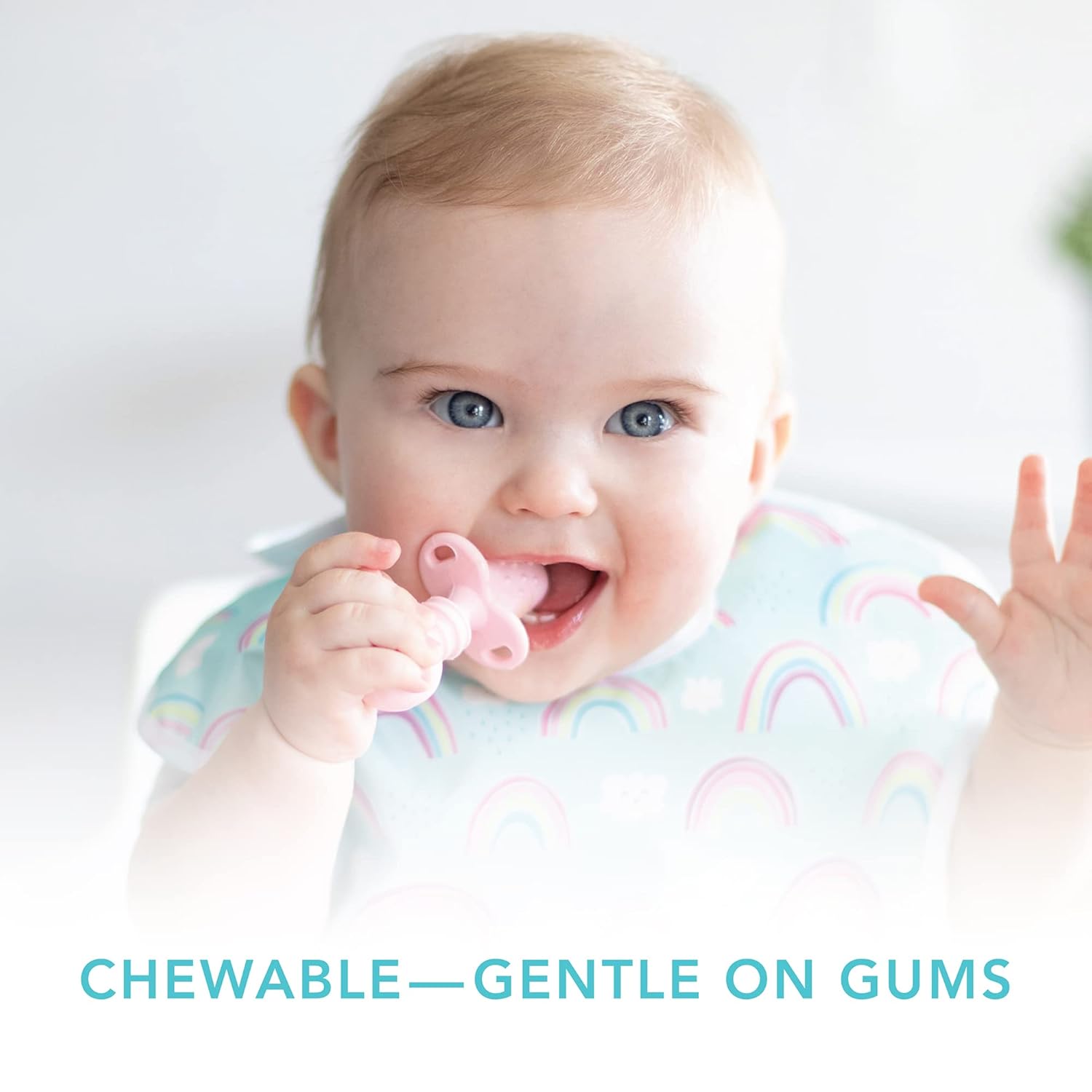 - GENTLE ON GUMS – Textured silicone is not only easy-to-grip, but soft and gentle on gums; Chewtensils can be chewed by teething babies; the back of the spoon head has sensory bumps to stimulate gums