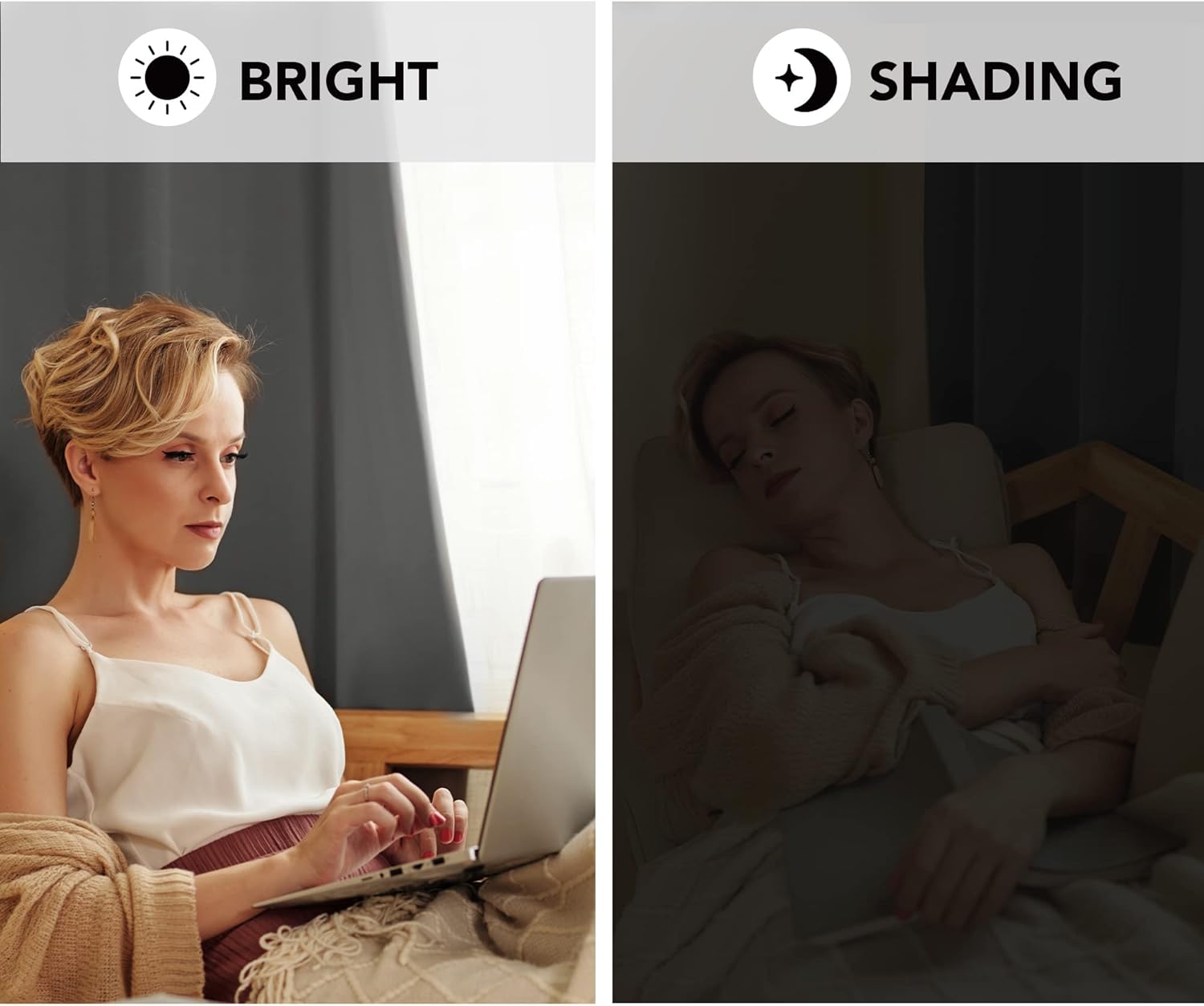 - Sleep when the world’s awake. You get room-darkening that helps you rest better—dark colors block up to 99% of light; lighter shades soften daylight for a calm glow.