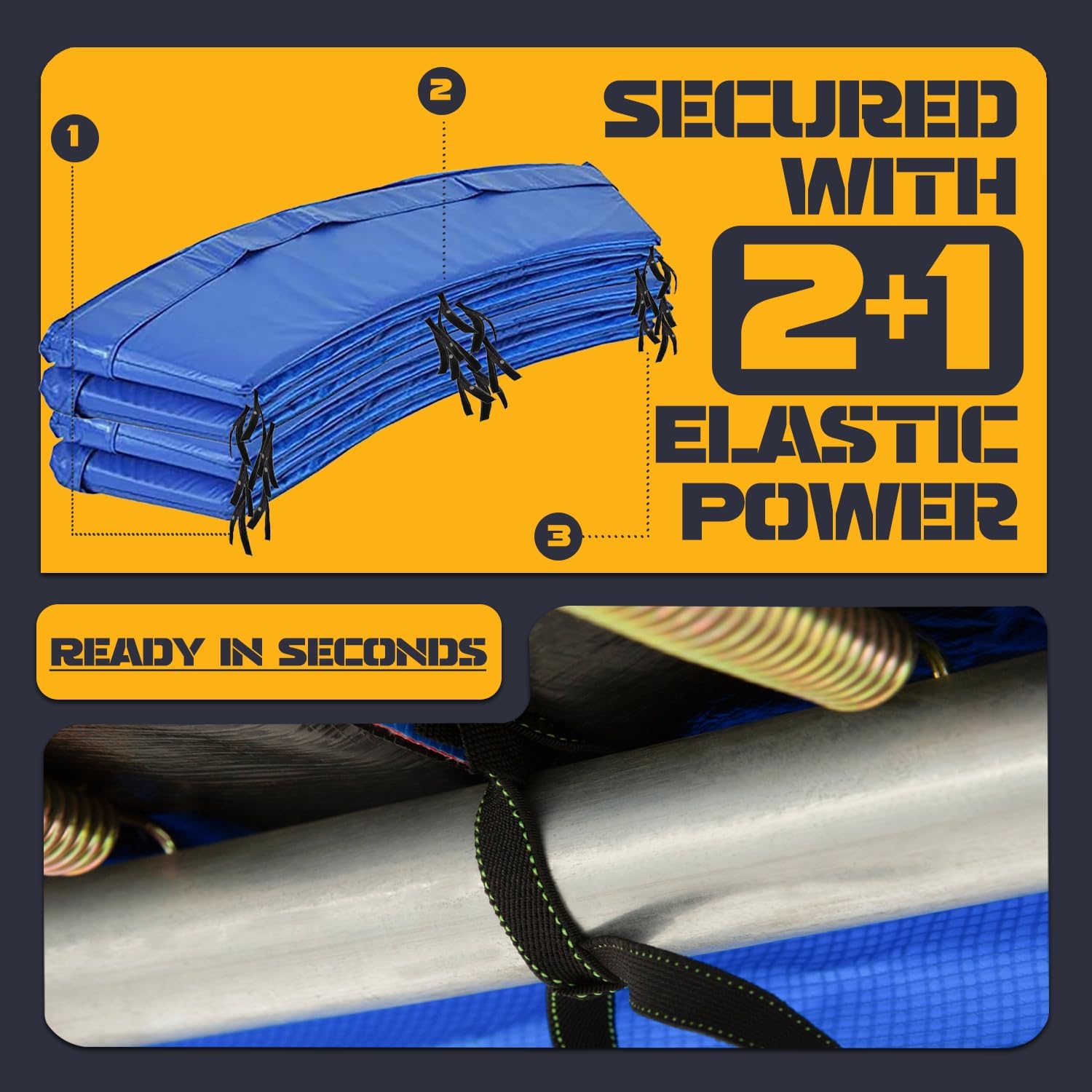 - ⭕️【 UV-Resistant & Weatherproof Trampoline Pad for Long-Lasting Use】Engineered with 2000-hour UV resistance testing, this trampoline cover blocks harmful sun rays & repels water, ensuring year-round outdoor safety. The double-reinforced elastic straps securely wrap around trampoline poles & frames, preventing shifting during play. Ideal as a trampoline mat replacement 13 FT for backyard setups, schools, or recreational centers demanding fade-proof and waterproof protection.Weather resist!