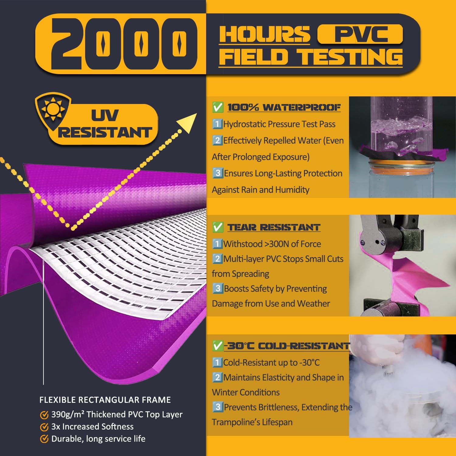 - 🏆️【Trusted Quality ULTRAPOWER SPORTS trampoline pad】 As a top-tier trampoline replacement mat brand, we prioritize safety and durability. We believe that you who appreciate quality will know how to choose wisely. The double industrial-grade stitching and triple-layer construction (PVC + PE + padding) outperform other flimsy covers. Whether replacing worn-out mats or upgrading old trampolines, choose our trampoline pad replacement that balances affordability with professional-grade performance.