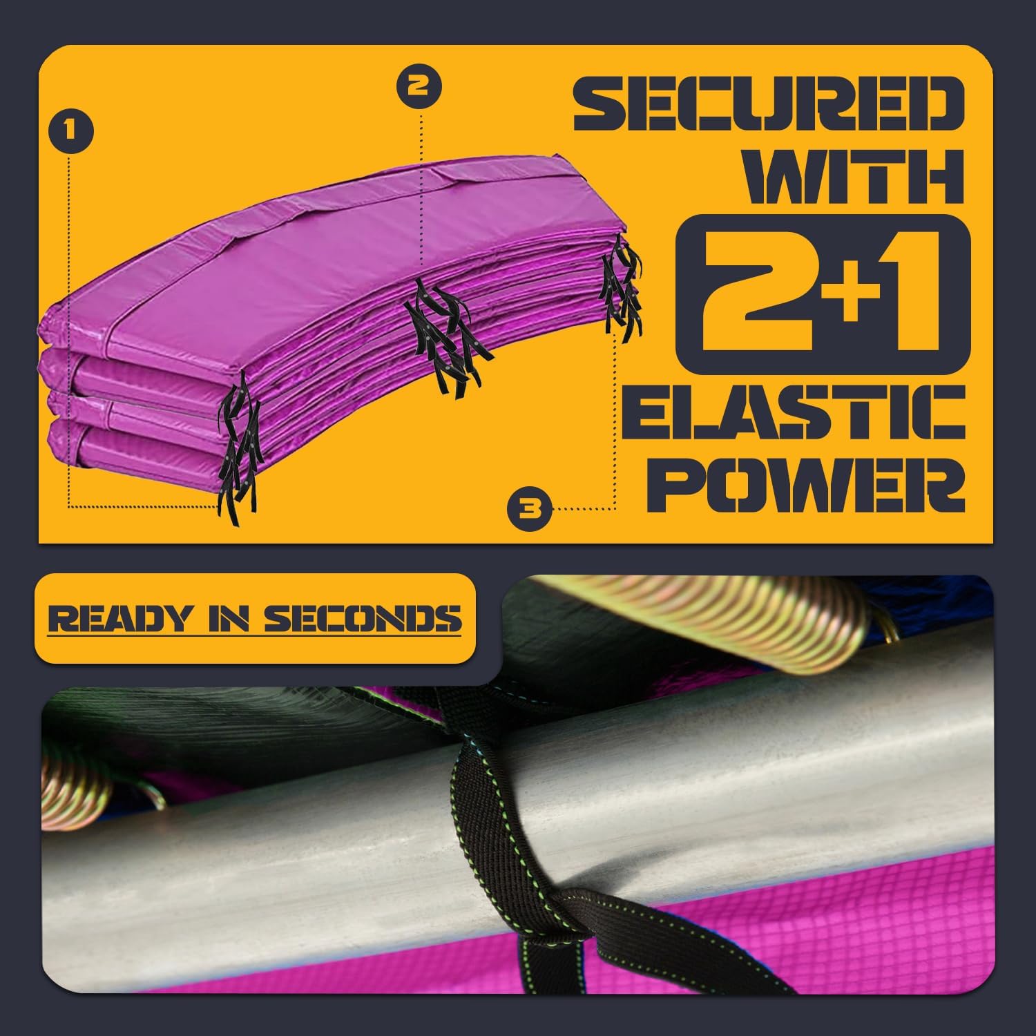 - ⭕️【 UV-Resistant & Weatherproof Trampoline Pad for Long-Lasting Use】Engineered with 2000-hour UV resistance testing, this trampoline cover blocks harmful sun rays & repels water, ensuring year-round outdoor safety. The double-reinforced elastic straps securely wrap around trampoline poles & frames, preventing shifting during play. Ideal as a trampoline mat replacement 10 FT for backyard setups, schools, or recreational centers demanding fade-proof and waterproof protection.Weather resist!