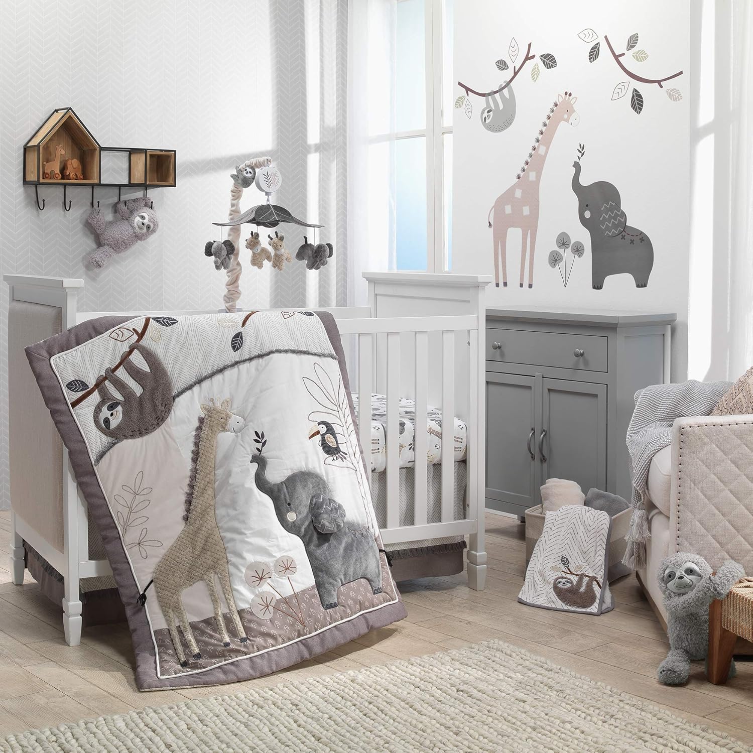 Lambs & Ivy Baby Jungle Animals 4-Piece Gray/White/Taupe Crib Bedding Set