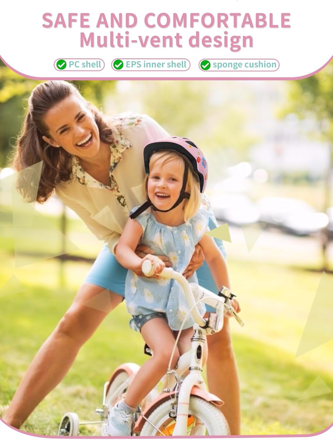 - PERFECT CHOICE: Baby helmet perfect for bike, bicycling,roller, and inline skating, skateboarding, scooter. The flexibility of the strap makes it fit well for different requirements of boys and girls. It’s a good Birthday, Christmas, Thanksgiving