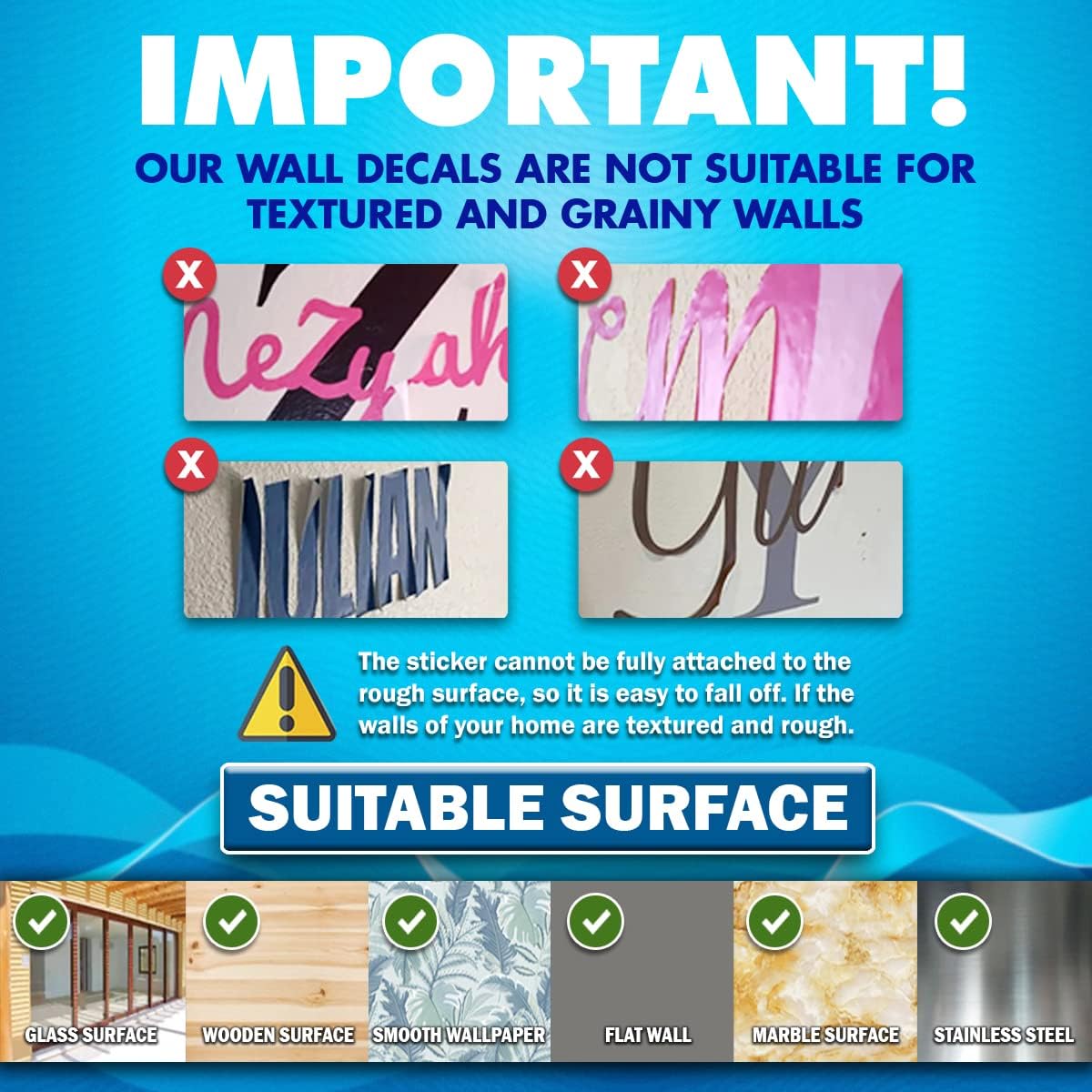 - 👉 IMPORTANT: Our decals are perfect for flat surfaces (NOT SUITABLE FOR TEXTURED WALL). Use them for personalized bedroom wall decor, customized girl nursery decor, kids' room wall decals with names, nursery wall decals for baby girls, cars, windows, stainless steel surfaces, and more. Note: The sticker can be taken off without damaging the surface.