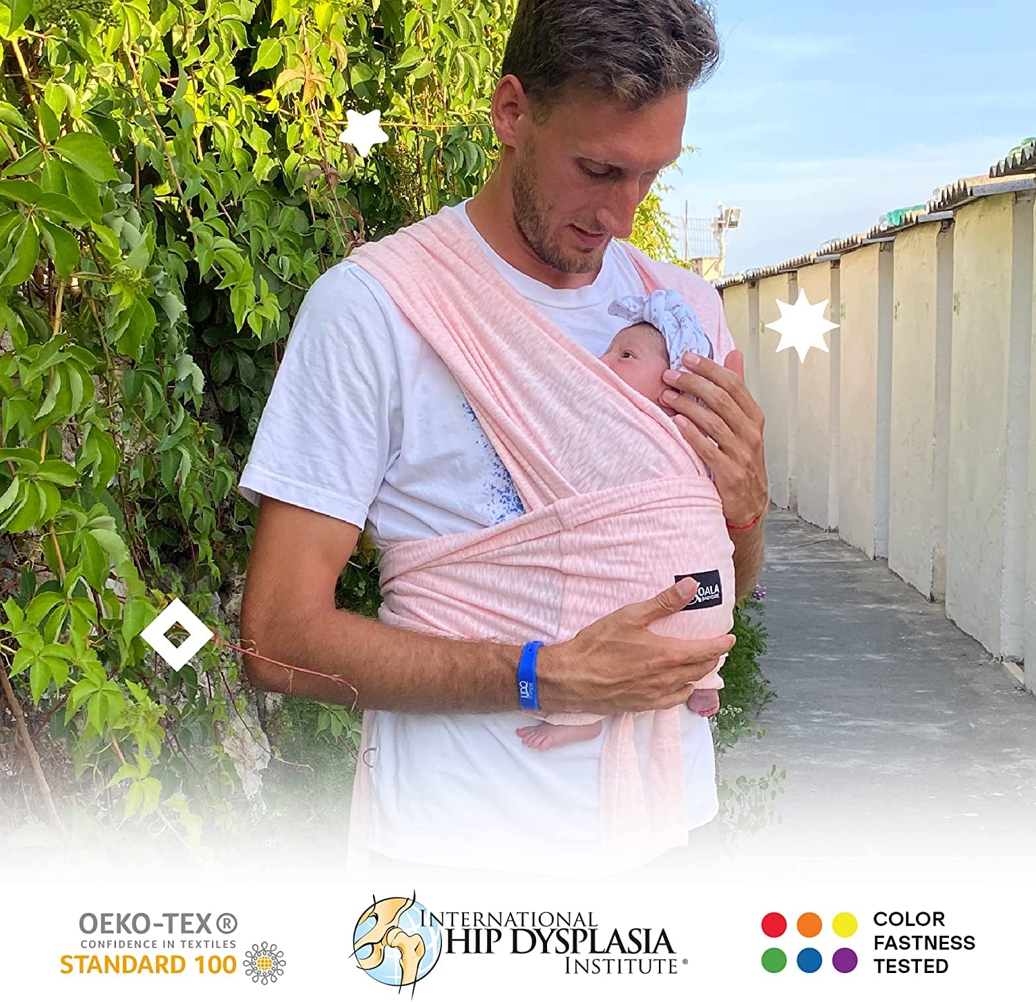 - EXCELLENT FOR PROLONGED USE: A traditional baby sling carrier becomes loose during use and therefore requires frequent binding. Koala Cuddle Band will always remain in place thanks to its ring closure. Moreover, any adjustments will be very simple. Material: 65% polyester, 30% cotton, 5% spandex (only in one direction)