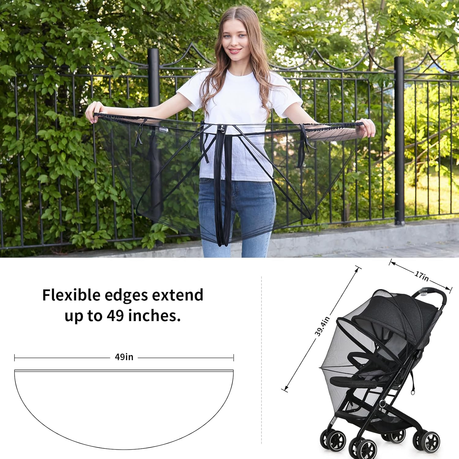 - PE HIGH ELASTIC SUPPORT SYSTEM:Bug Net for stroller supported by PE rubber band 3D support,can be stretched freely,enhance the sense of space,flexible and fashionable