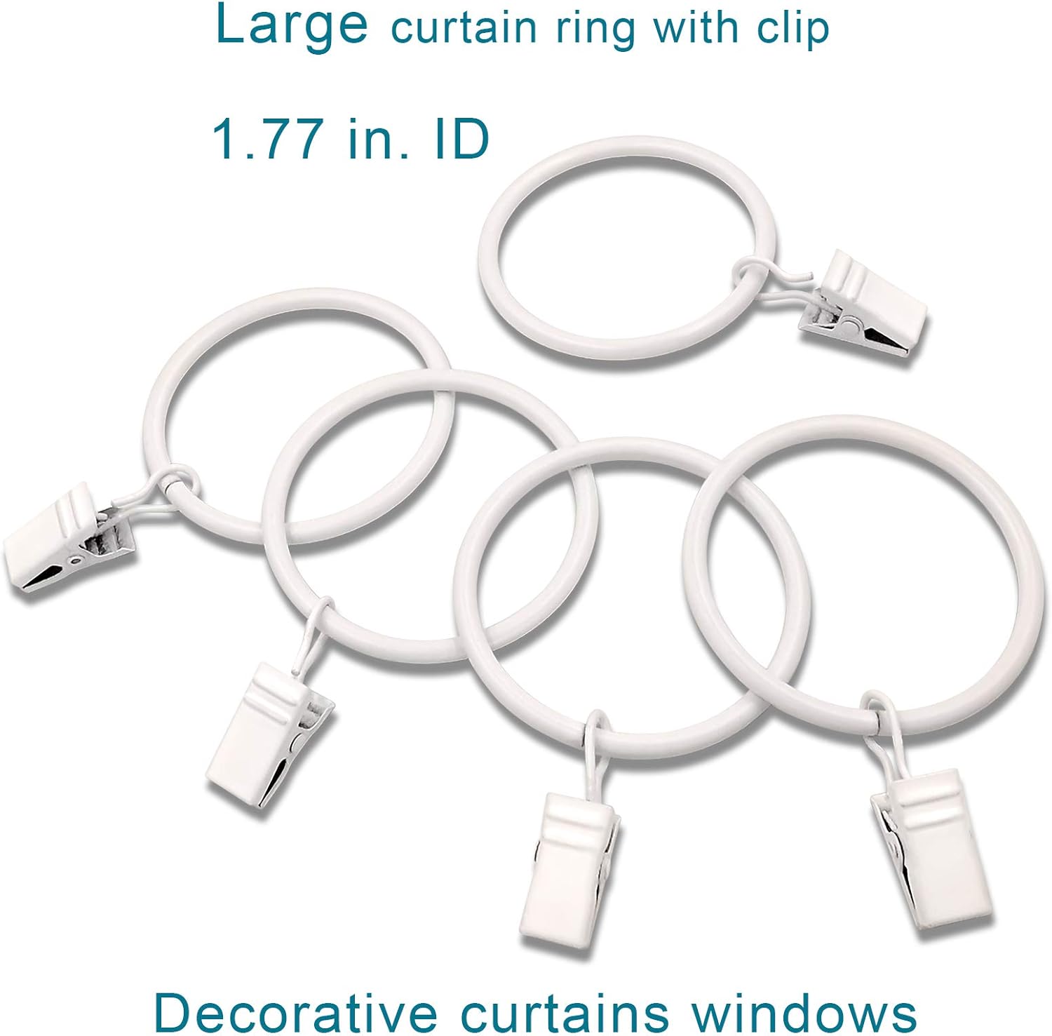 - 【Curtain Rings Slide Easily】Curtain rings eyelet inner diameter 1.77 in, drapery rings with clips for used in ones 1.2 in curtain rod and that’s the perfect size, the curtains slide easily, multiple times a day and function perfectly, make your life full of fun.