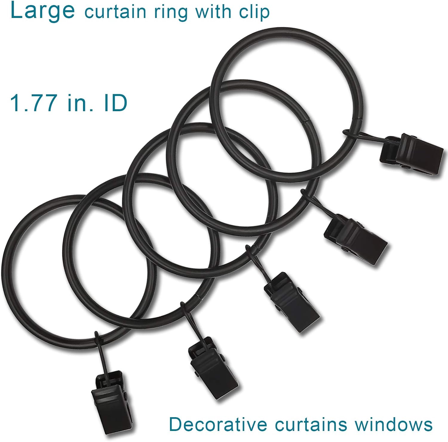 - 【Curtain Rings Slide Easily】Curtain rings eyelet inner diameter 1.77 in, drapery rings with clips for used in ones 1.2 in curtain rod and that’s the perfect size, the curtains slide easily, multiple times a day and function perfectly, make your life full of fun.