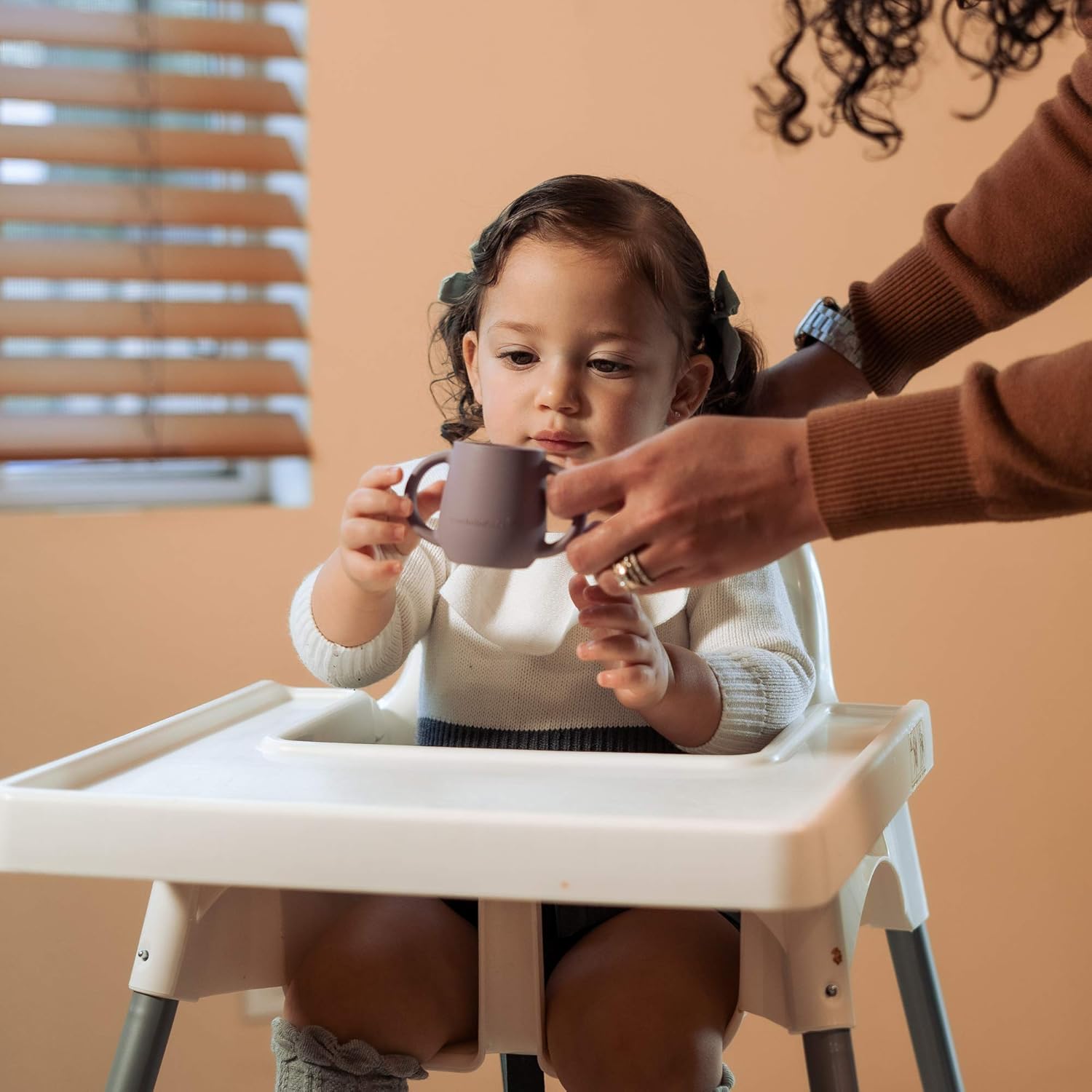 | Teenie Tiny™ Silicone Developmental Baby-Led Weaning Drinking Cups (2 pack) (Warm Taupe and Blue Fusion)