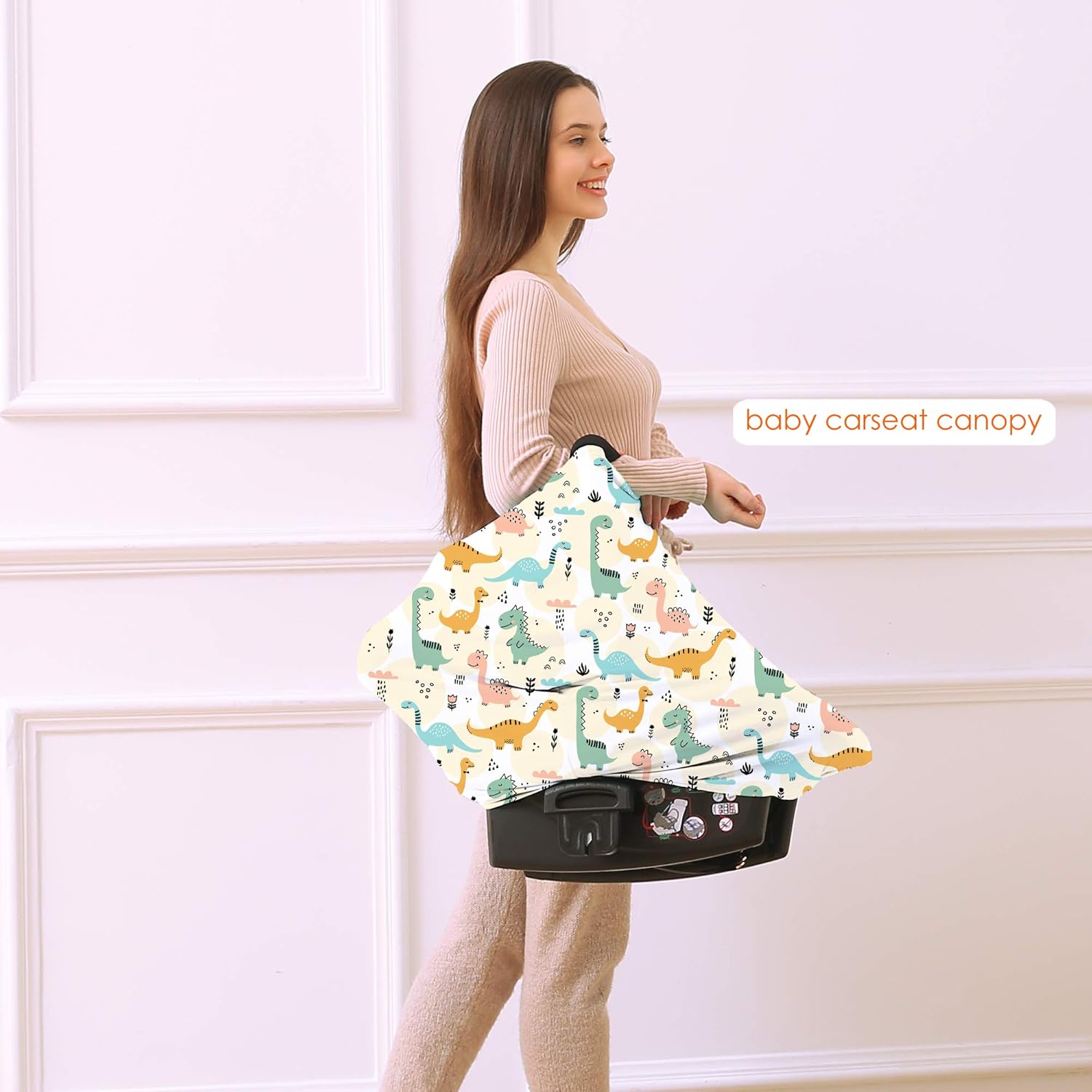 Multi-use Carseat Covers Breastfeeding Cover - Car Seat Covers for Babies, Stretchy Carseat Canopy Cover, Boys and Girls Shower Gifts (Colours Dinosaur)