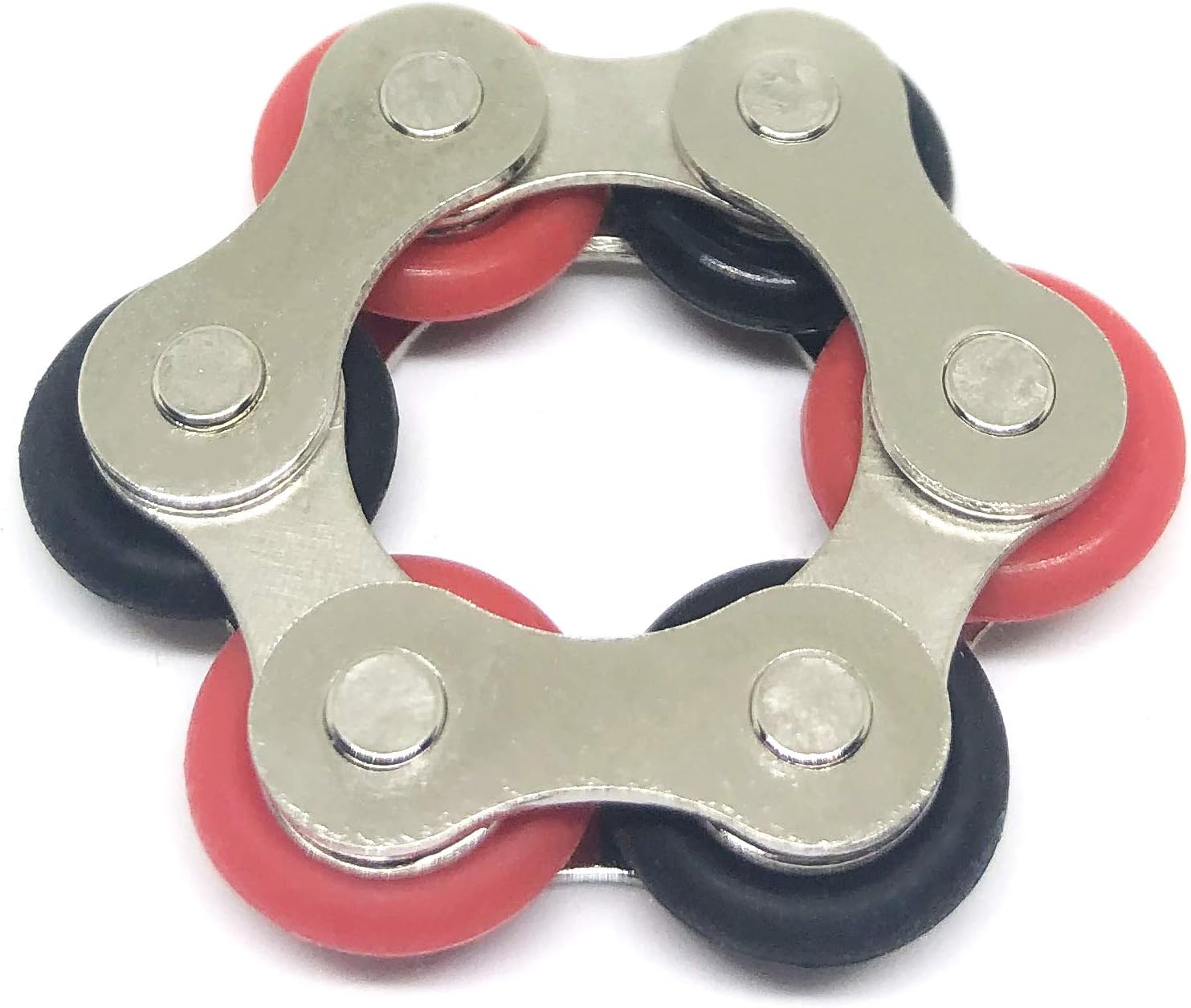 Fidget Roller Chain Toys with Metal and Silicone Rings - Stress Relief Perfect for ADHD, ADD, Anxiety in Office, School Stocking Stuffers Gifts (Red, Black)