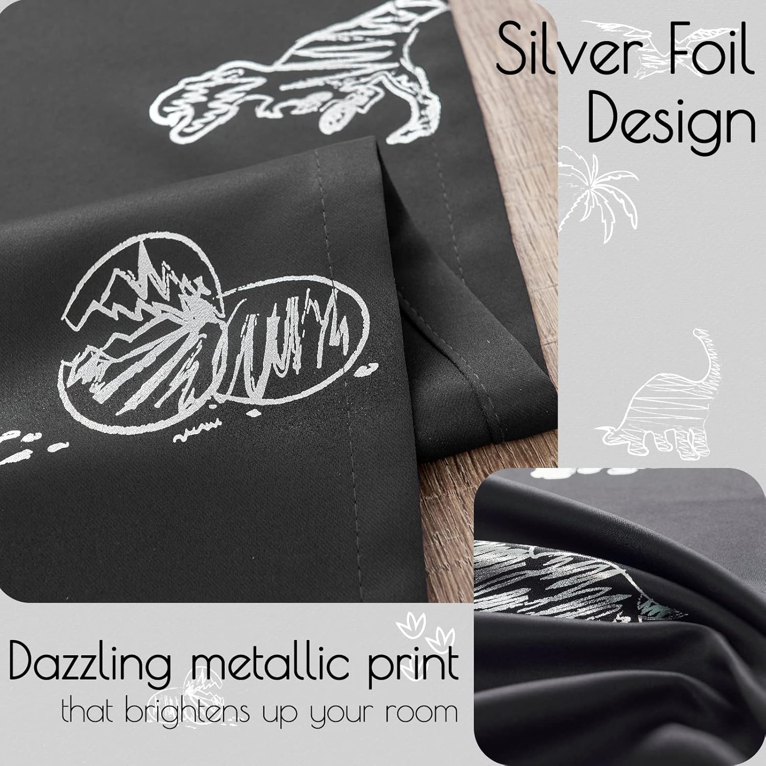 Vangao Kids Curtains Black Blackout Dinosaur Curtains for Boys Kids Nursery Girls Room Silver Dino Foil Print Thermal Insulated Drapes Grommet Top Window Treatments 84 Inches Length 2 Panels