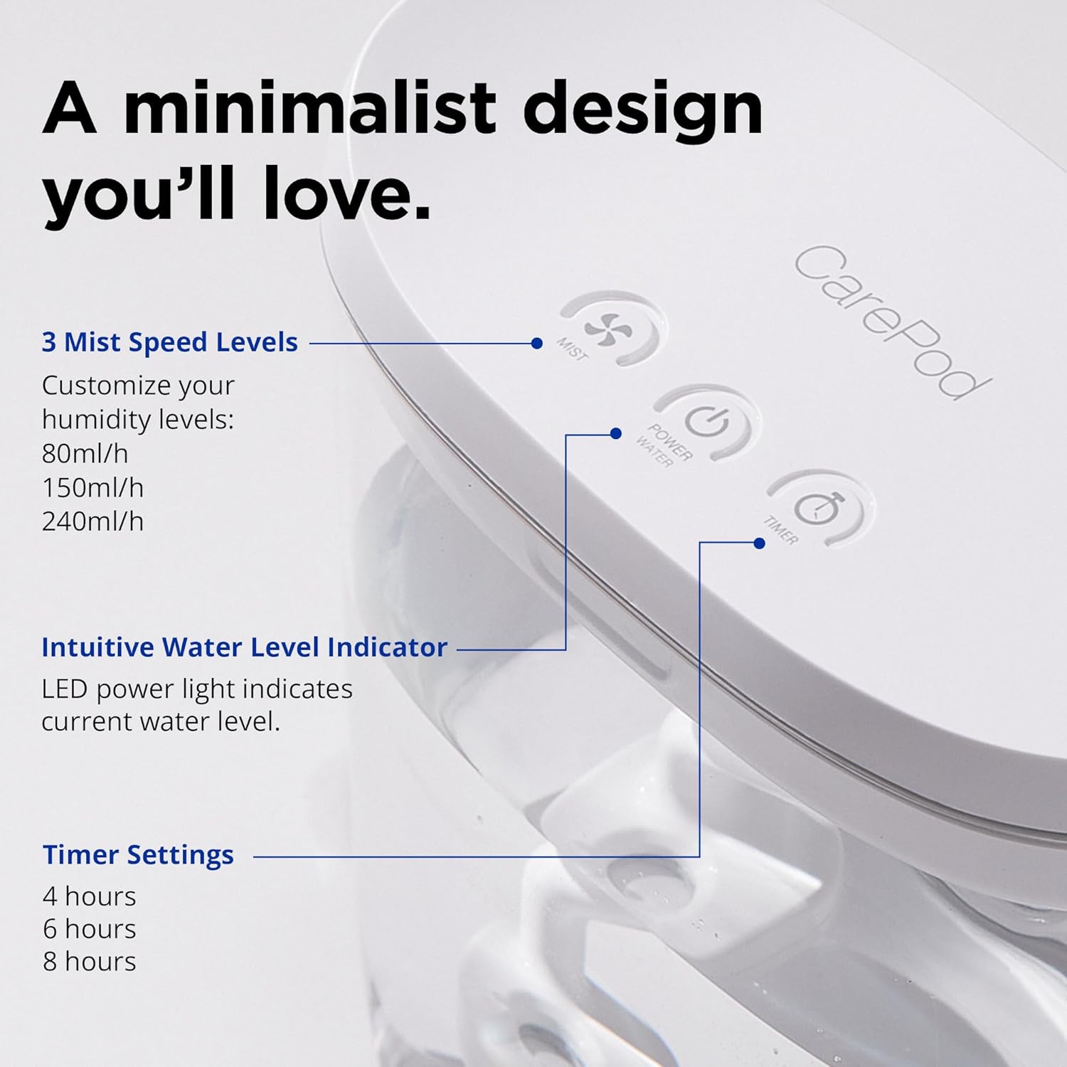 - HEALTHIER AIR FOR YOUR FAMILY: The Carepod Mini 21P humidifier for baby can help relieve dry skin, allergies & poor sleep with safe, clean mist for every room. It delivers cool mist ideal for nurseries, kids’ rooms, and personal spaces.
