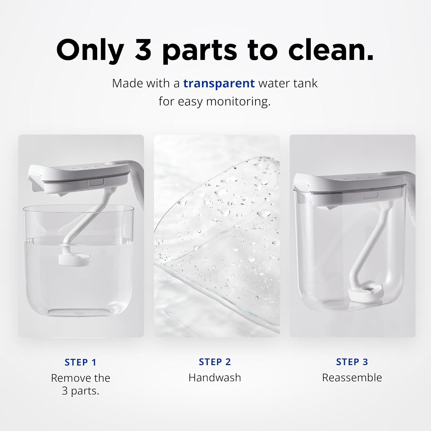 - EFFORTLESS CLEANING WITH 3 PARTS: With only three washable parts—control pannel lid, oscillator wand, and rounded-corner water tank—cleaning is quick, easy, and thorough with this ultrasonic humidifier for bedroom. Perfect for busy lifestyles and hassle-free maintenance.
