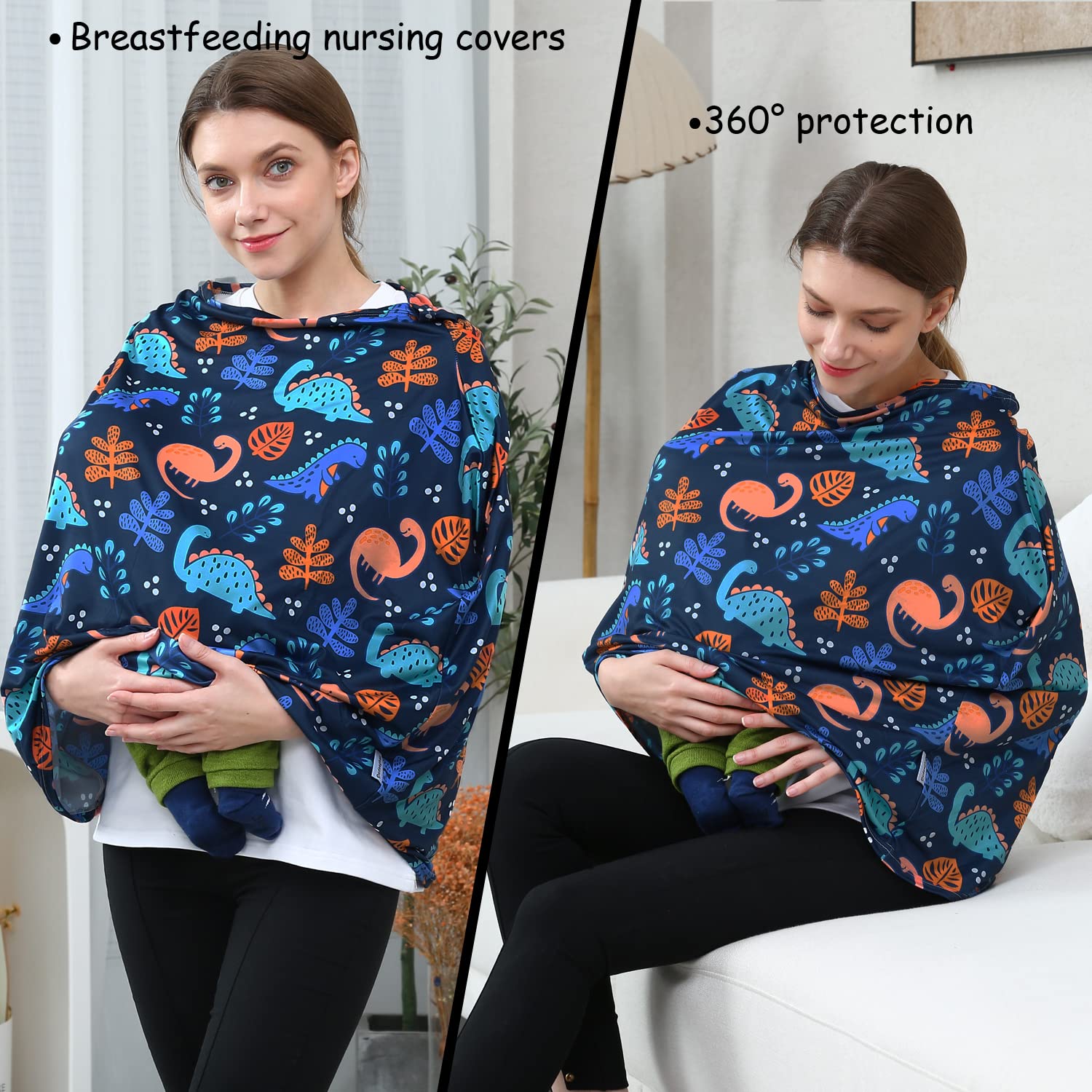 - CUTE DINOSAUR PRINT & MULTIPURPOSE USE: Enjoy a multitude of purposes for this carseat canopy such as car seat covers also be used as a breastfeeding cover, shopping cart cover, stroller cover, high chair cover and more!