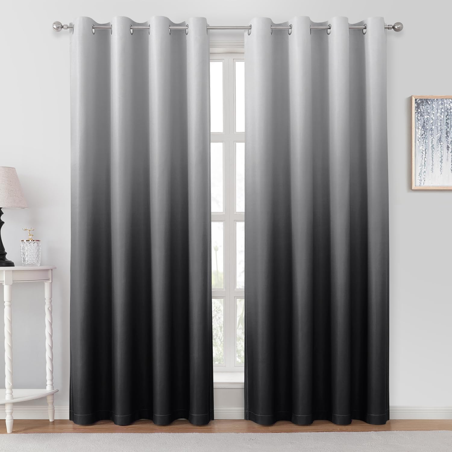 HOMEIDEAS Black Ombre Blackout Curtains 52 X 84 Inch Length Gradient Room Darkening Thermal Insulated Energy Saving Grommet 2 Panels Window Drapes for Living Room, Bedroom