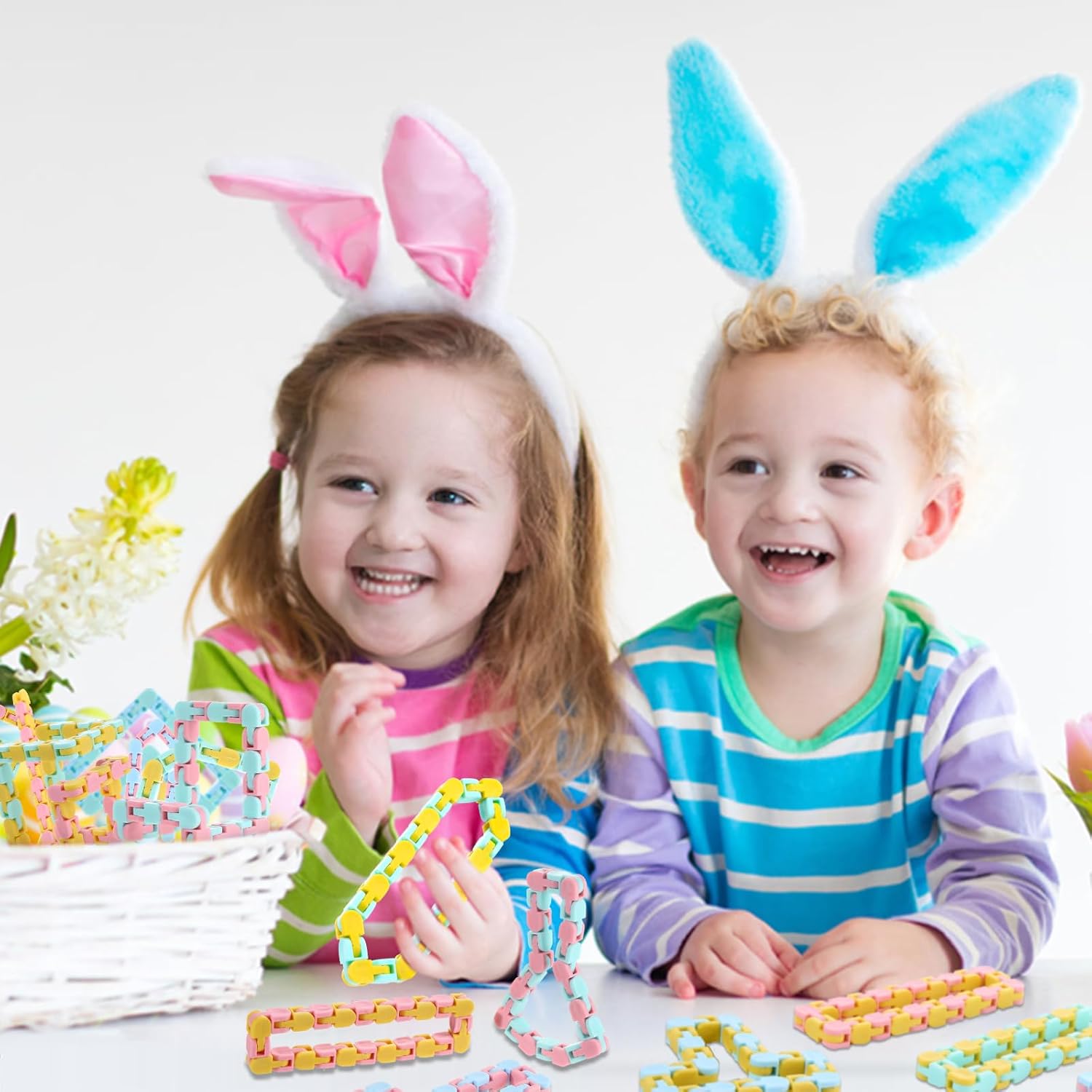 Woosir 6 Pack Wacky Tracks Fidget Toys Gifts for Kids Classroom Brithday Party Favors 24 Links Sensory Snap Fidget Snake Click Toys for Kids Adult Stress Relief Party Gifts Macarons Colors