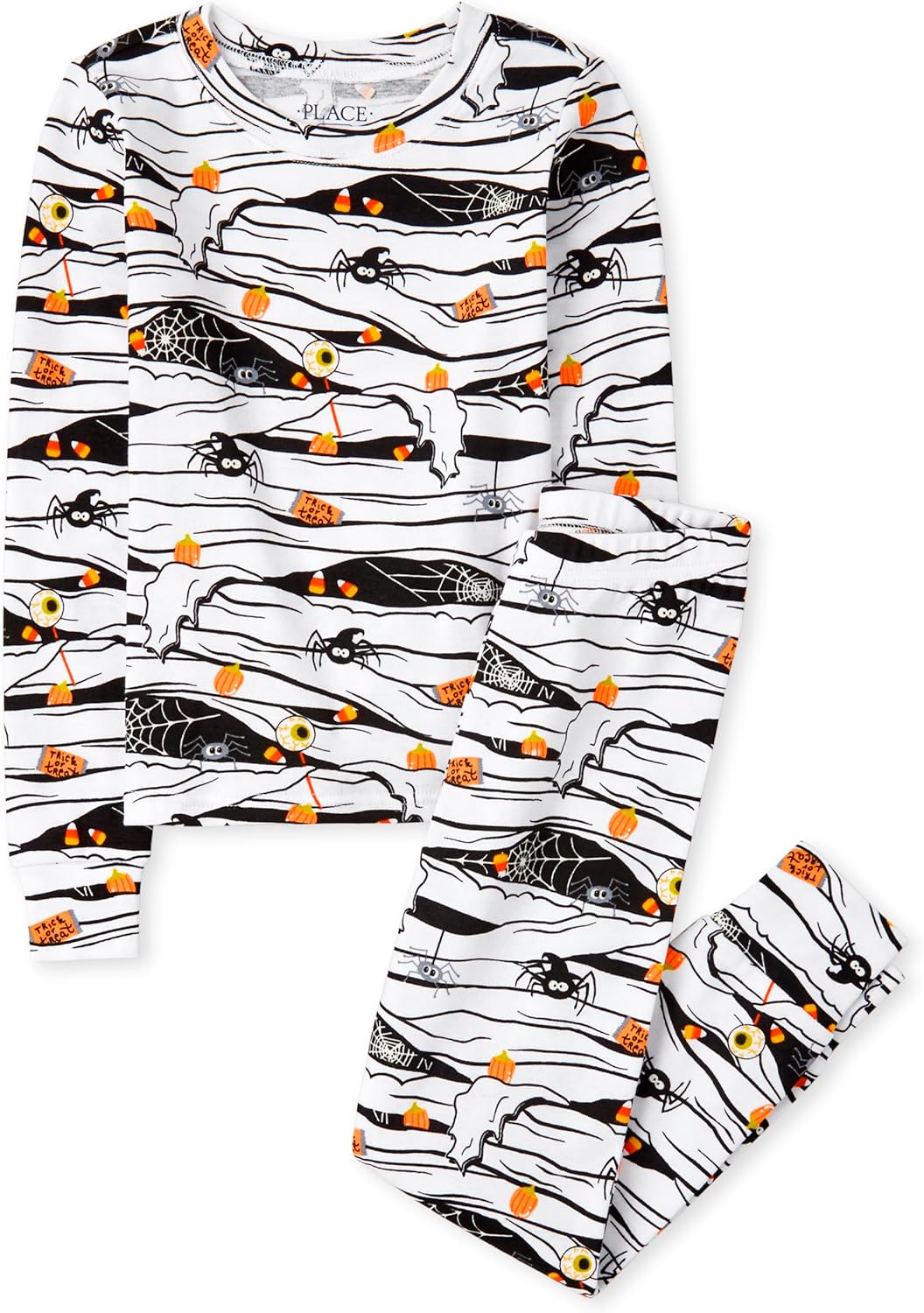 - Top features allover mummy and candy print that glows in the dark; styled with rib-knit crew neck and banded sleeve cuffs