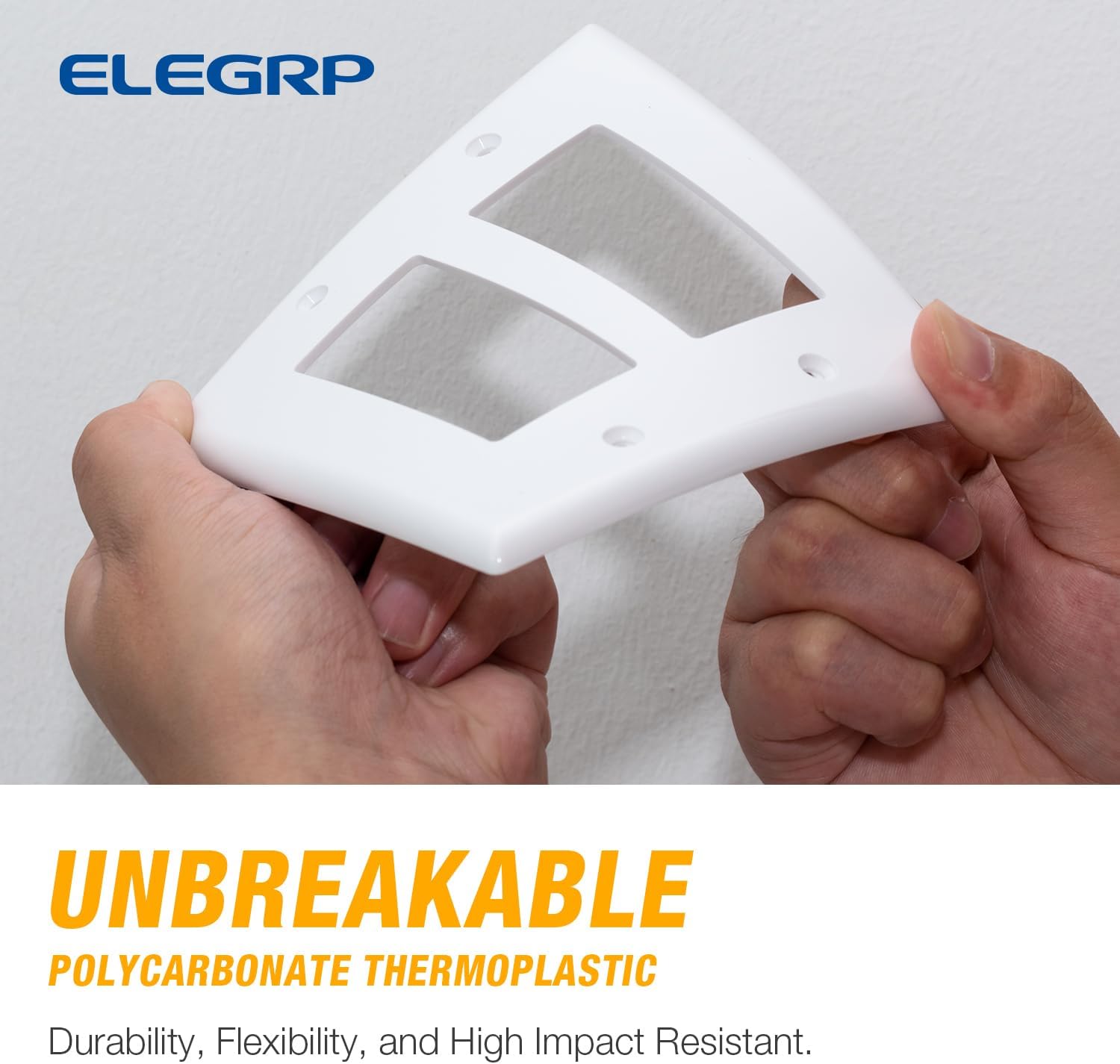 ELEGRP 2-Gang Decorative Wall Plates, Mid-Size 4.88" H x 4.94" L Unbreakable Thermoplastic Faceplate Cover for Decorator Receptacle Outlet Switch, UL Listed (10 Pack, Glossy White)