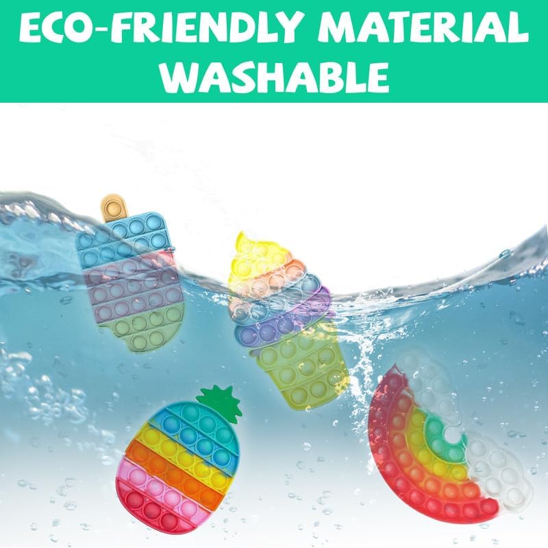 4 Pcs Fidget Toys for Kids, Rainbow Push Bubble Fidget Toys Ice Cream Sensory Toy Pineapple Squeeze Toys Set for ADHD Autism Stress Relief Toy for Girl Gift