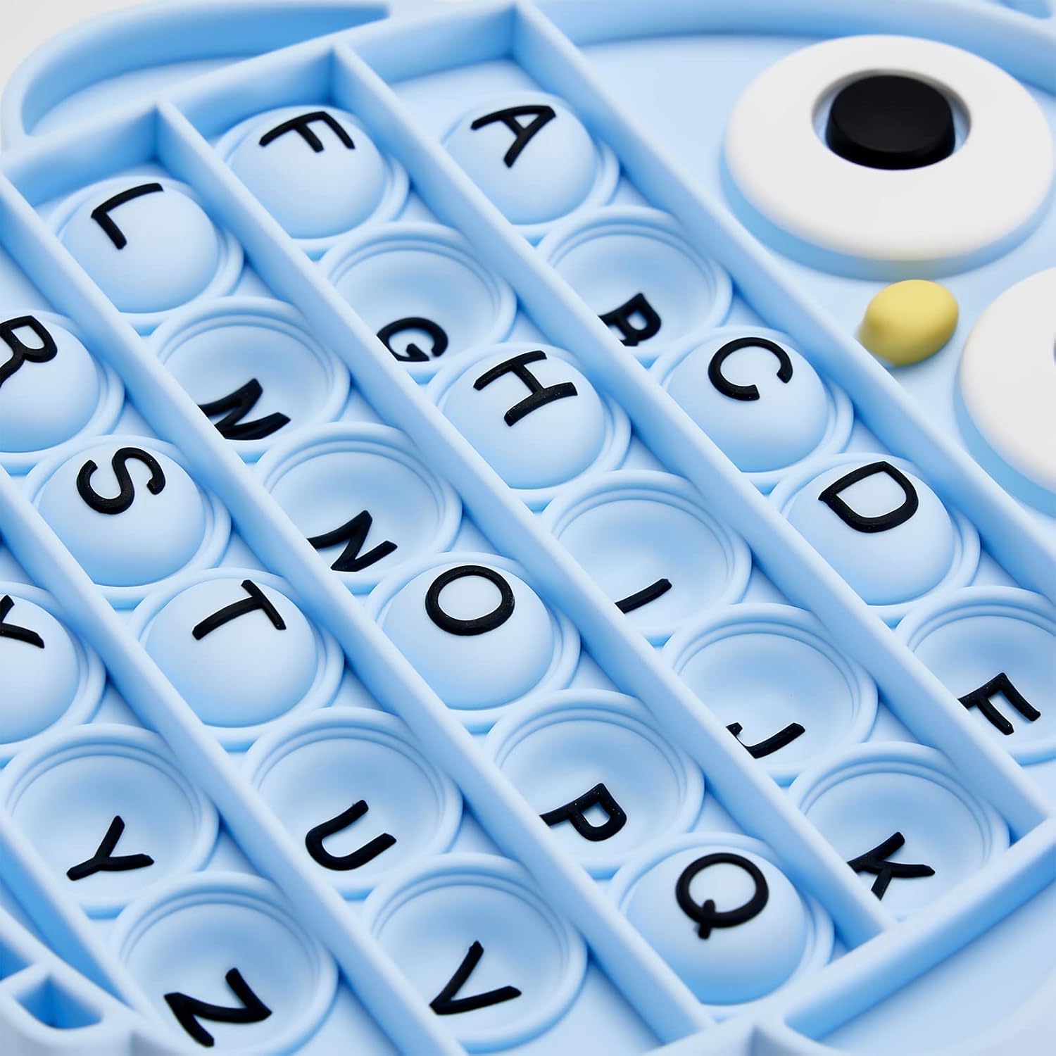 Push Pop Bubble Fidget Sensory Toy, Silicone Stress Relief Popping Toy, ABC Alphabet Owl Shaped Educational Learning Tools for Toddlers Kids Students (Black Letters-Blue)