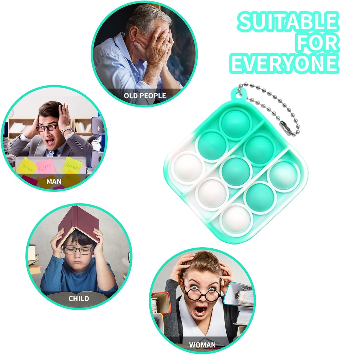 - Widely Used: The Mini Pop keychain toys are lightweight, durable,waterproof. You can use it as a key-chain and carry it with you all the time. Not only suitable for children, but also for adults, it helps create a good atmosphere. When press the bubbles, the mini pop toy will make a slight popping sound, when all the bubbles on the front are squeezed, then flip it over and start again. Give you endlessly fun