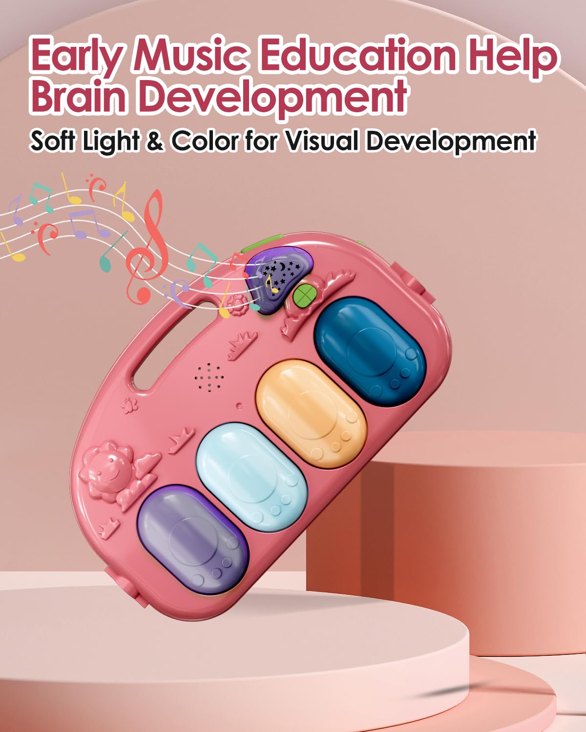 dearlomum Baby Play Mat Baby Gym,Funny Play Piano Tummy Time Baby Activity Mat with 5 Infant Sensory Baby Toys, Music and Lights Boy & Girl Gifts for Newborn Baby 0 to 3 6 9 12 Months (Pink)