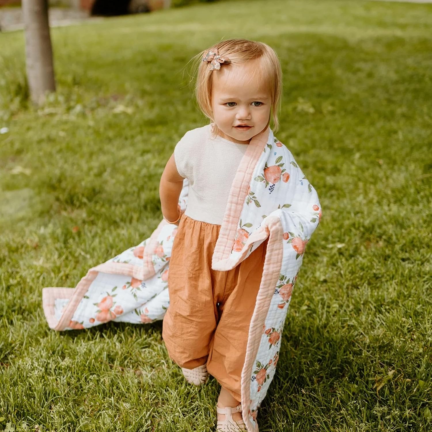 - PREMIUM QUALITY: We choose premium 100% cotton muslin for crafting our quilts to ensure your baby’s delicate skin is wrapped in a soft, breathable fabric that allows heat to escape and fresh air to enter. Freely woven muslin also provides flexibility for little arms and legs to comfortably move. Our quilts have detailed stitching throughout, color-coordinated reverse side fabric, and all edges feature bias binding.