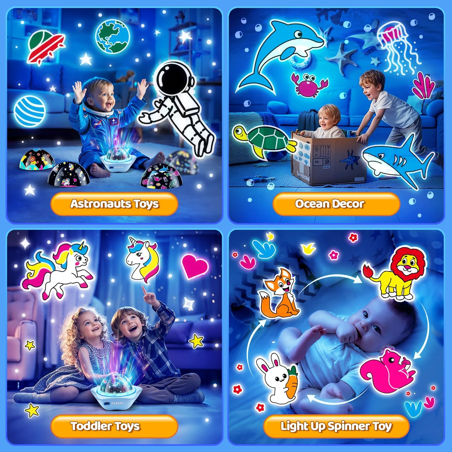 - 🎁PRETTY & AWESOME GIFTS FOR KIDS/BOYS/GIRLS: The cute star projector/kids projector dinosaur toy is a perfect birthdays gift for kids of all age groups. This kids projector can project Stars,Unicorns,Dinosaurs,Oceans,Astronaut,Animals on the ceiling,Make the kids birthdays/festive atmosphere extra special! The excitement of playing, the funny of colorful films projection, and the laughter shared with friends and family become cherished moments' yr child will fondly remember.A perfect parent-pick gift for 3 4 5 6 7 8 year old girls and boys on birthday,festival's gifts for kids,New Year,Easter gifts for kids and any occasion.Take star projector for kids toys/dinosaur toys for kids 2-9 home!