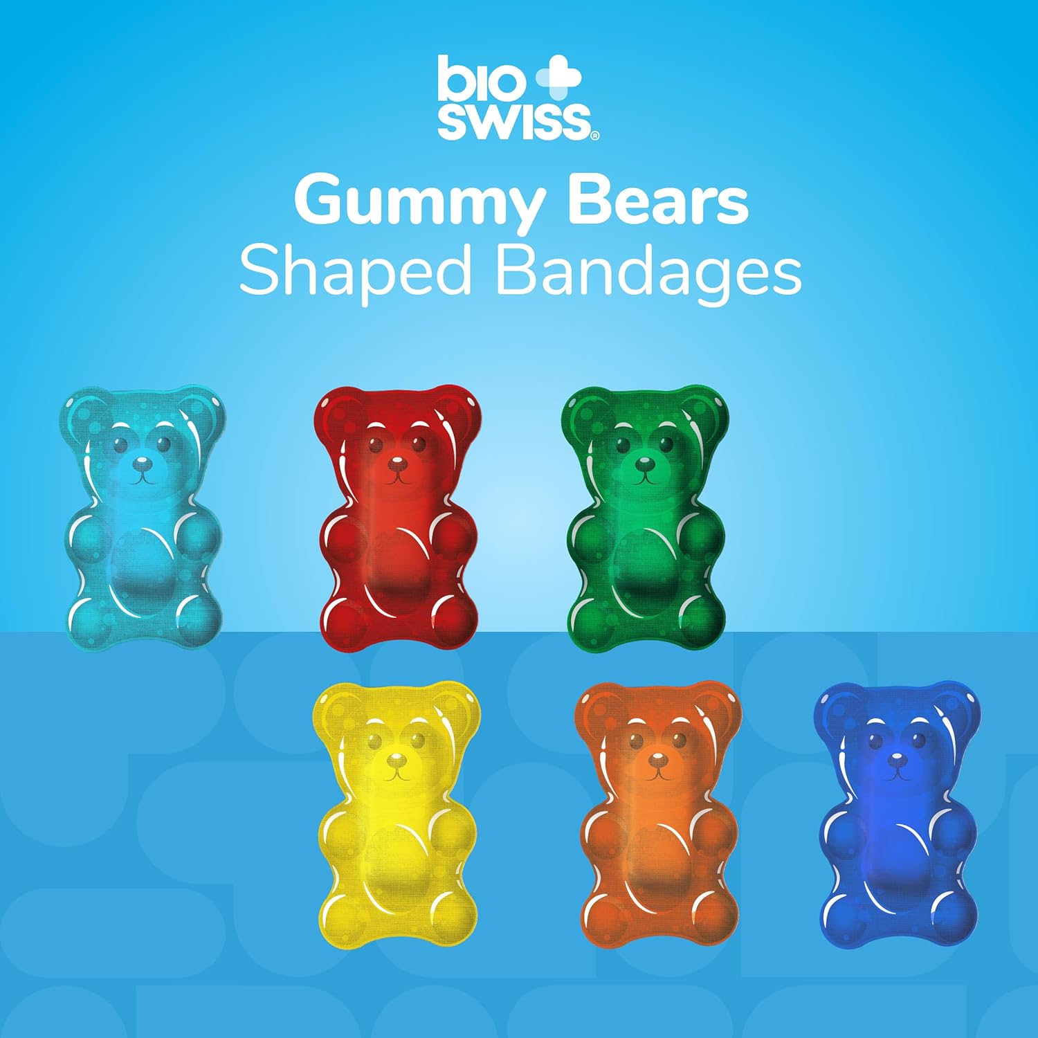 - GUMMY BEAR BANDAGES: This 24 piece pack of adorable and delicious looking gummy bear bandages is great for putting a smile on kids' faces while protecting wounds such as cuts, scrapes, and burns, and come in 3 assorted colors; sticky bandages are perfect for kids and adults alike, and also for school nurses and pediatric doctors