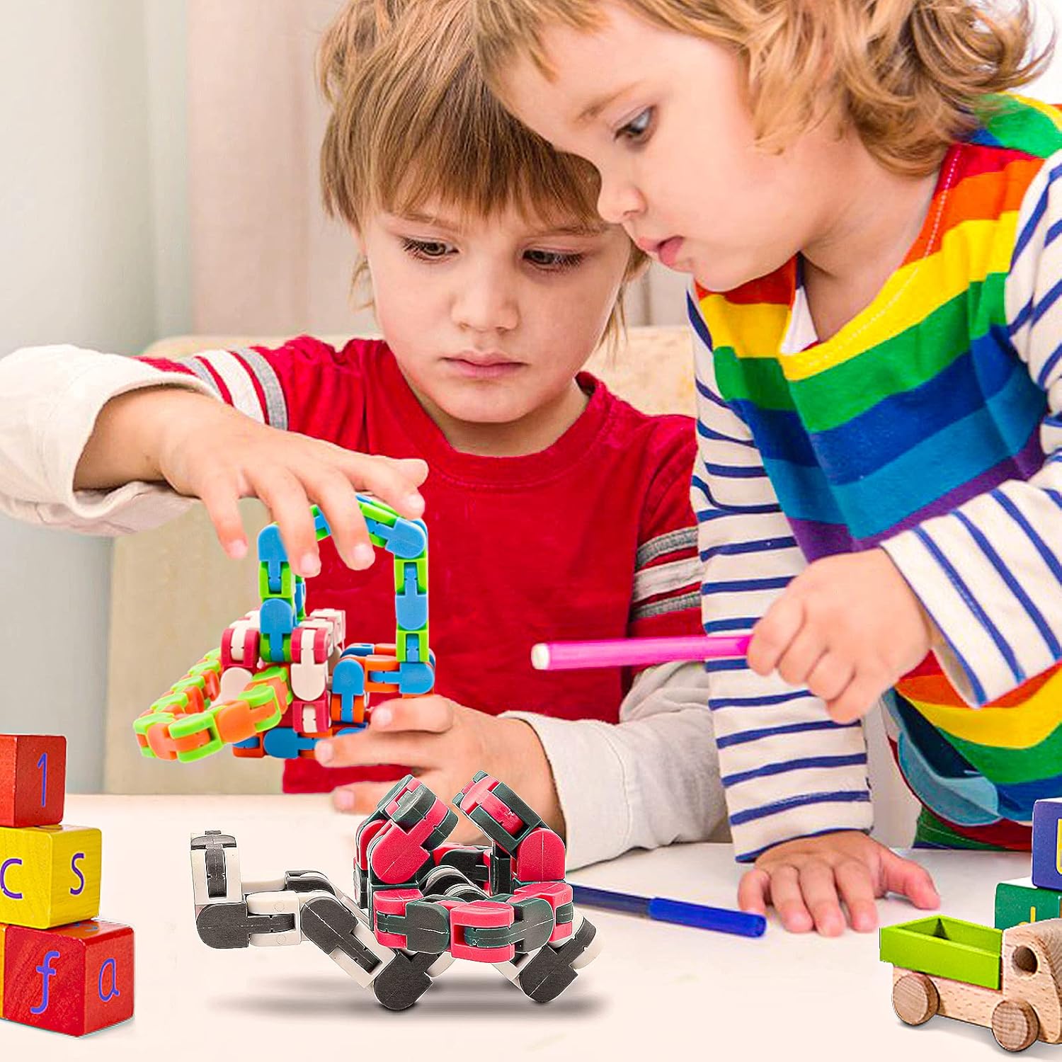 - IMPROVE CHILDREN'S MULTIPLE SKILLS: Each of the 24 links can pivot and lock into 5 positions, so you can create any shapes you want, such as letters, numbers, animal and more. bring challenges and fun to your fingers and brain. Not only help kids concentrate, improve their practical and reasoning skills, increase creativity and expand their thinking, but also help promote a sense of calm, reduce stress and anxiety.