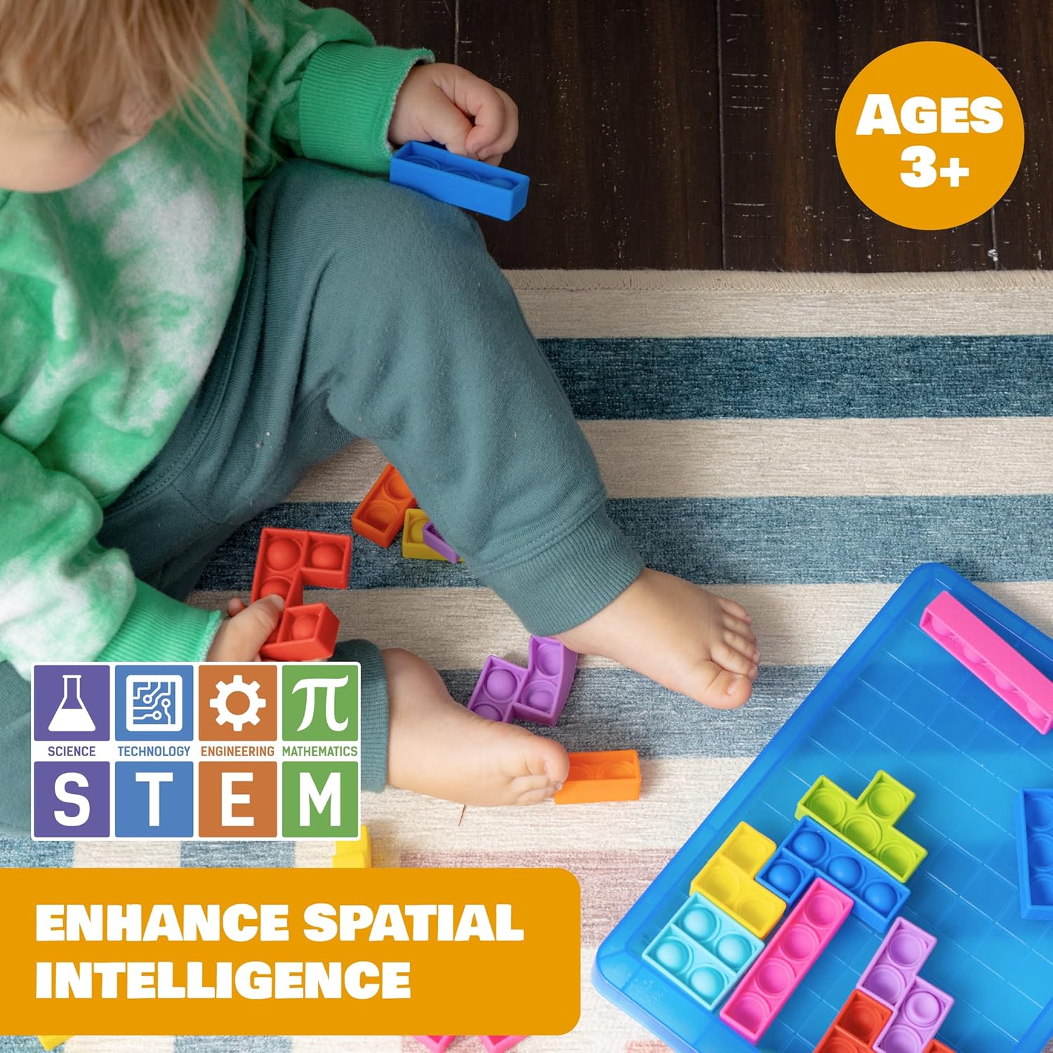 - POPPER FIDGET TOY GAME SET: Develop hand-eye coordination, logic, color cognition, problem-solving skills while playing with this 27-piece jigsaw puzzle fidget popper game set; great for brain challenging solo play or for parent-child and sibling bonding when you play together